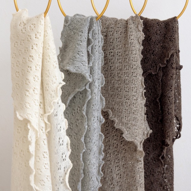 □在庫限りで終了です。 -------------------- 【ほの甘ふわりメロウフリル/花びらレースショール】 モンゴル産ウール100%。どこか懐かしい香りただようやさしいレース編みのショールです。 ひらひらと波打つメロウフリルは、花びらのように可憐で落ち着いた表情。さっと羽織るだけで、古い映画のワンシーンのようなノスタルジーを感じさせます。 肩にかけても、首に巻いても、あたまに巻いても。気分や装いに合わせて自由にアレンジできます。外では冷たい風をやわらげ、室内ではふんわりあたたかく包みます。 天然ウールが空気を含み、ふくらみと弾力のあるやさしい肌ざわり。素朴で上品なぬくもりで心までほぐれます。 羊毛そのままの無染色ナチュラルカラー。洋服はもちろん、お着物にも便利で使い勝手のよい一枚です。 -------------------- ■組成 ウール100% ■お手入れ 中性洗剤・ネット入れ・水、で洗濯機洗い可能です。 -------------------- □ご確認いただきたいこと 「空飛ぶ羊」のアイテムは、モンゴルの大自然に生きる動物たちの天然毛を使用しています。採毛時期や仕上げ加工により、色味・風合い・サイズ感に個体差が生じることがあります。これは天然素材ならではの特性です。 天然毛は使うほどにやわらかく肌になじみます。経年の変化を楽しみながら、長く大切にお使いいただけますように。