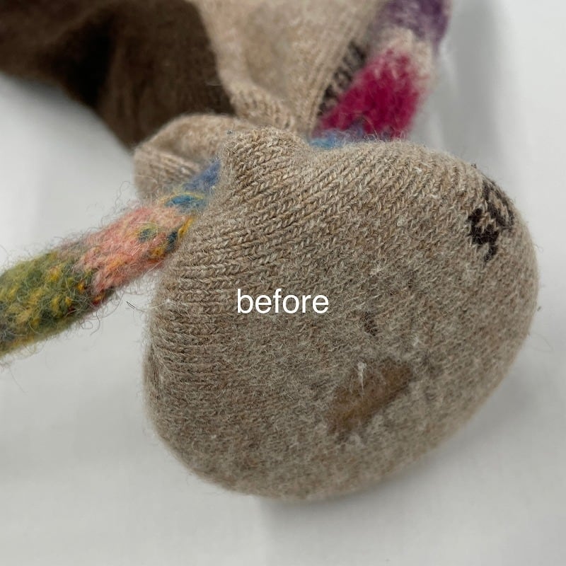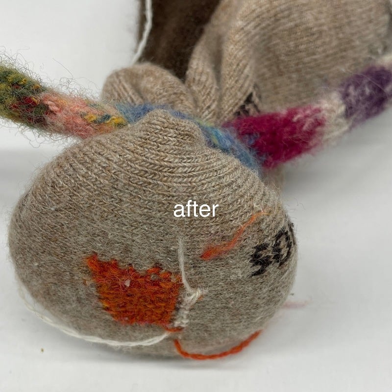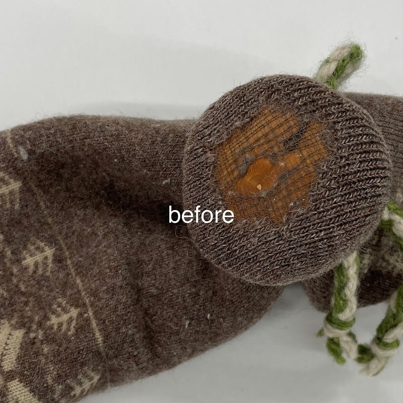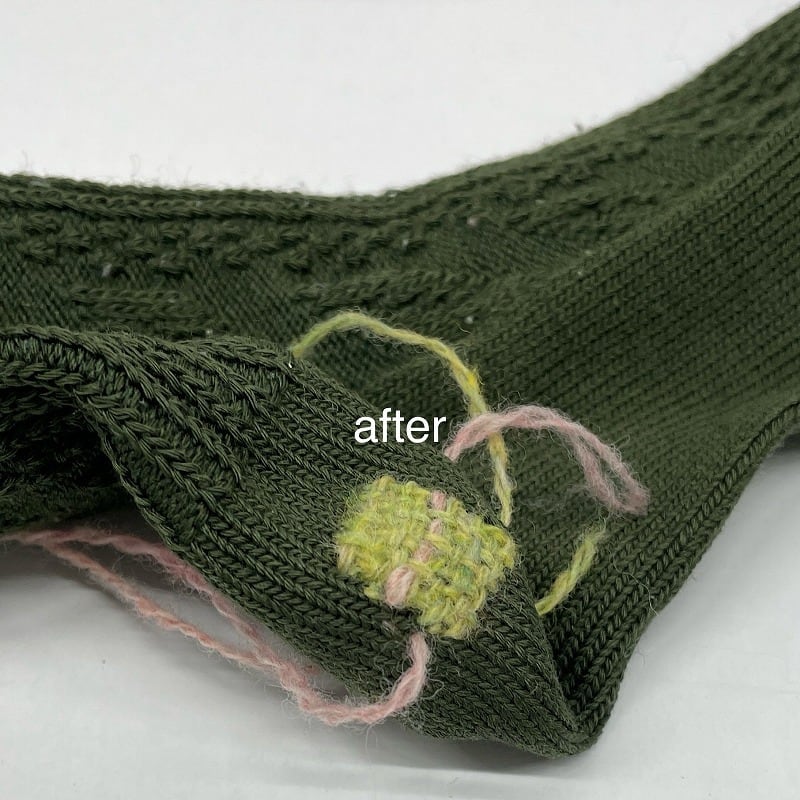 穴以外は、ふんわりなめらか、履き心地も最高。天然毛の良さがたっぷり詰まった靴下を、処分してしまうのはもったいない。