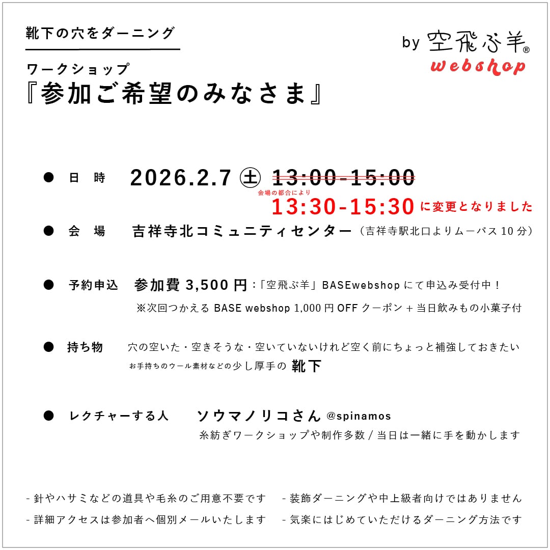 《靴下の穴をダーニング・ワークショップ2026》