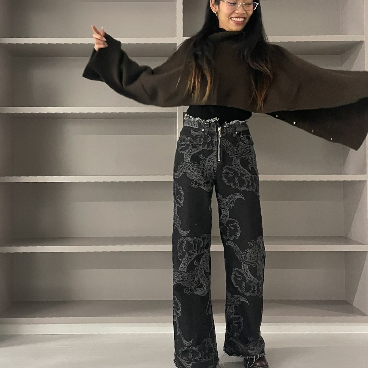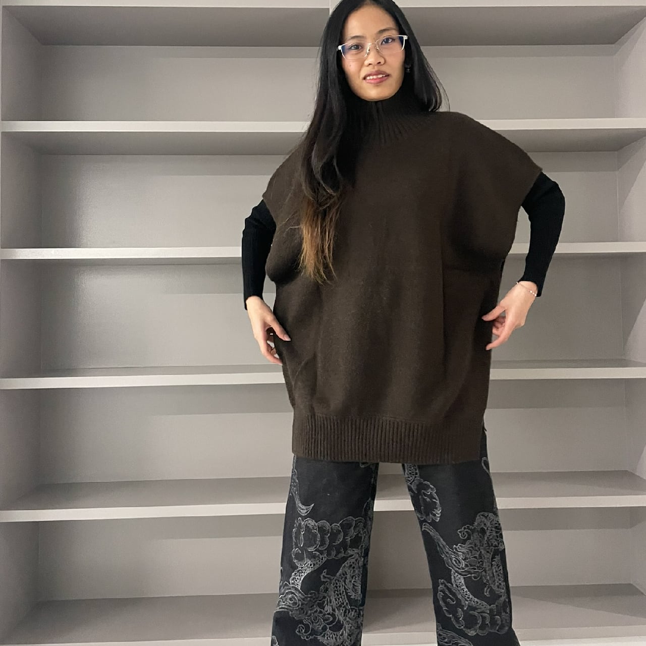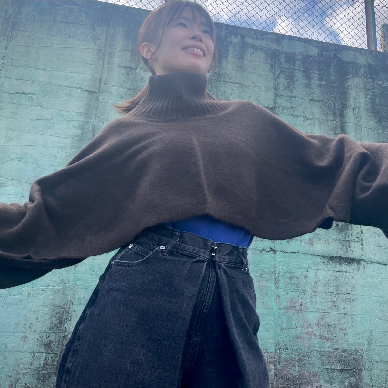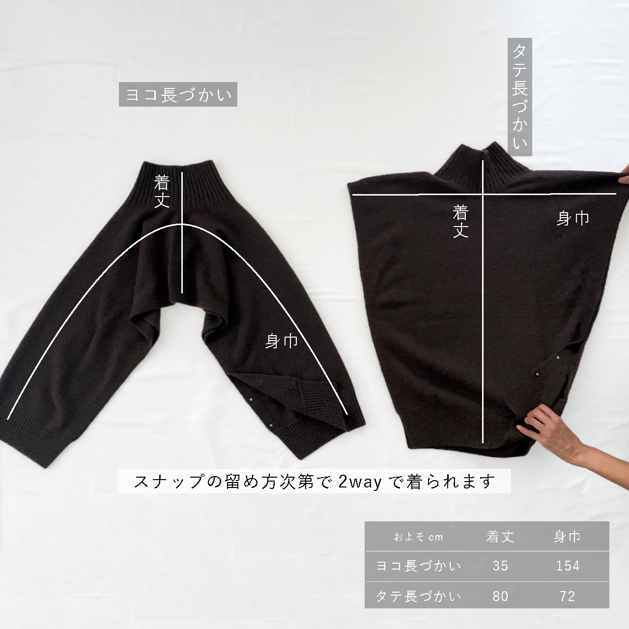 2way:ヨコ長に留めるとロングスリーブセーターのように。