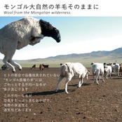「空飛ぶ羊」のアイテムは、モンゴルの大自然で育った動物たちの天然毛を使用しています。採毛時期や仕上げ加工により、色味・風合い・サイズ感に個体差が生じることがあります。これは天然素材ならではの特性です。