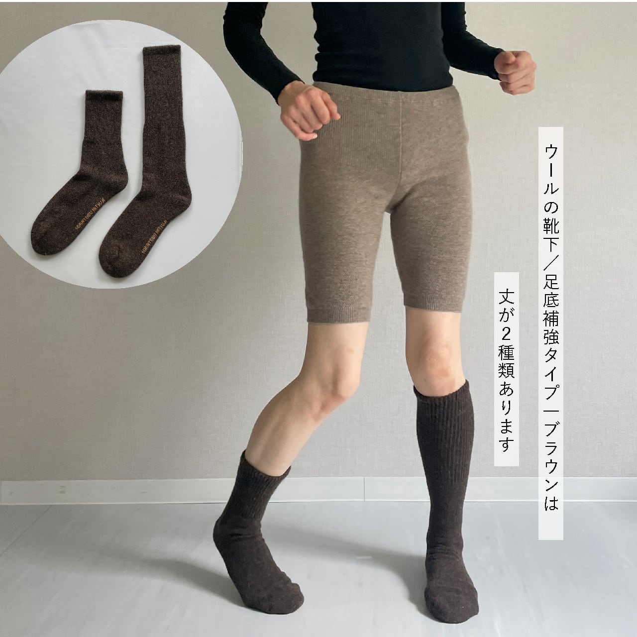 【秋冬になじむ新色ブラウン/ウール100%のあたたかなハイソックス】
