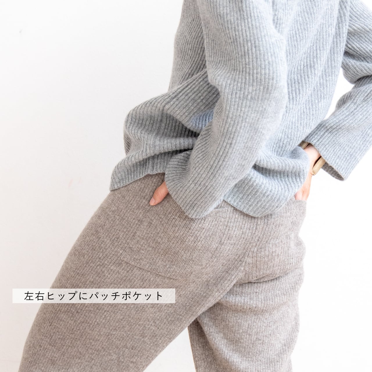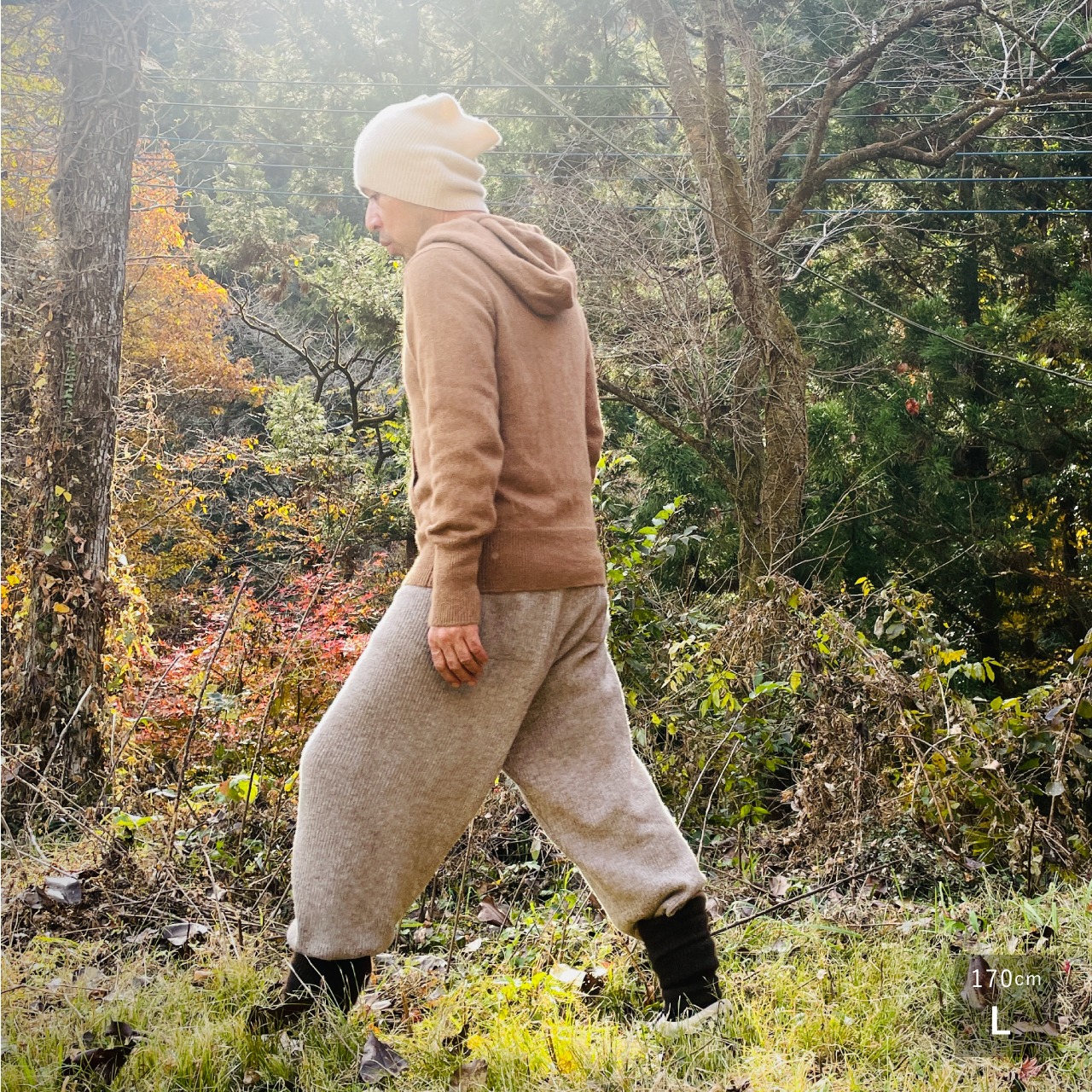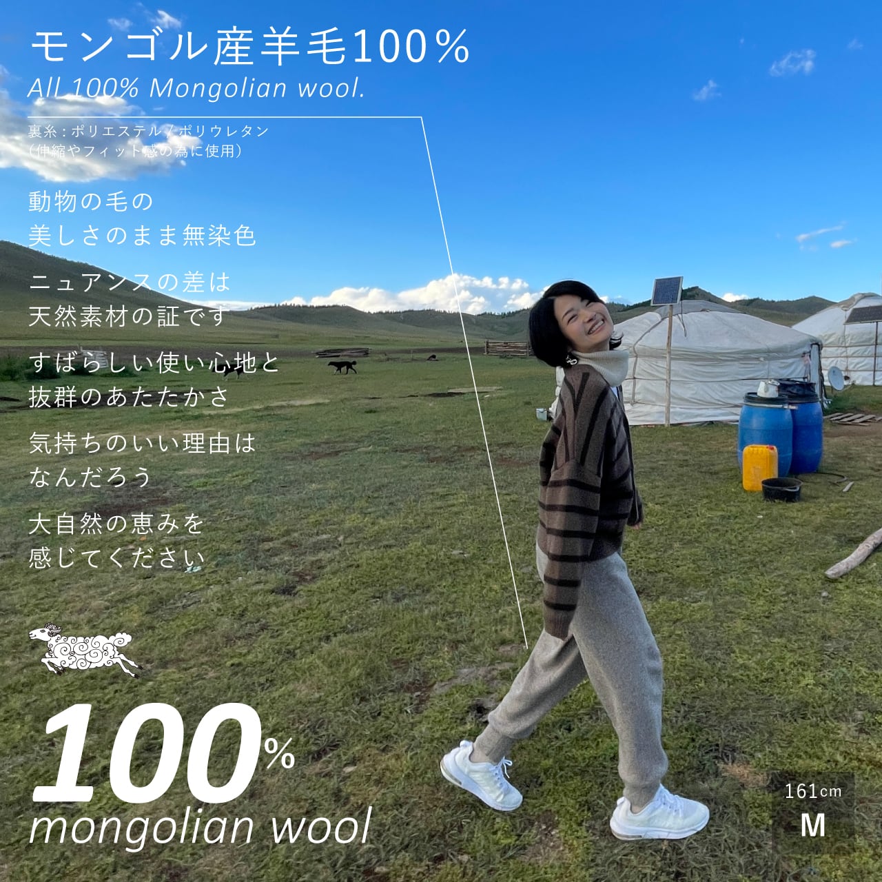 モンゴル産ウール100%、肌ざわりのよい薄手ニットのリラックスパンツです。