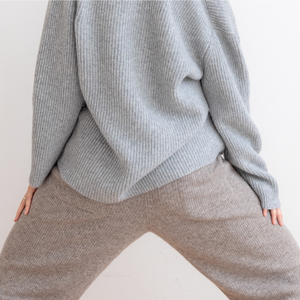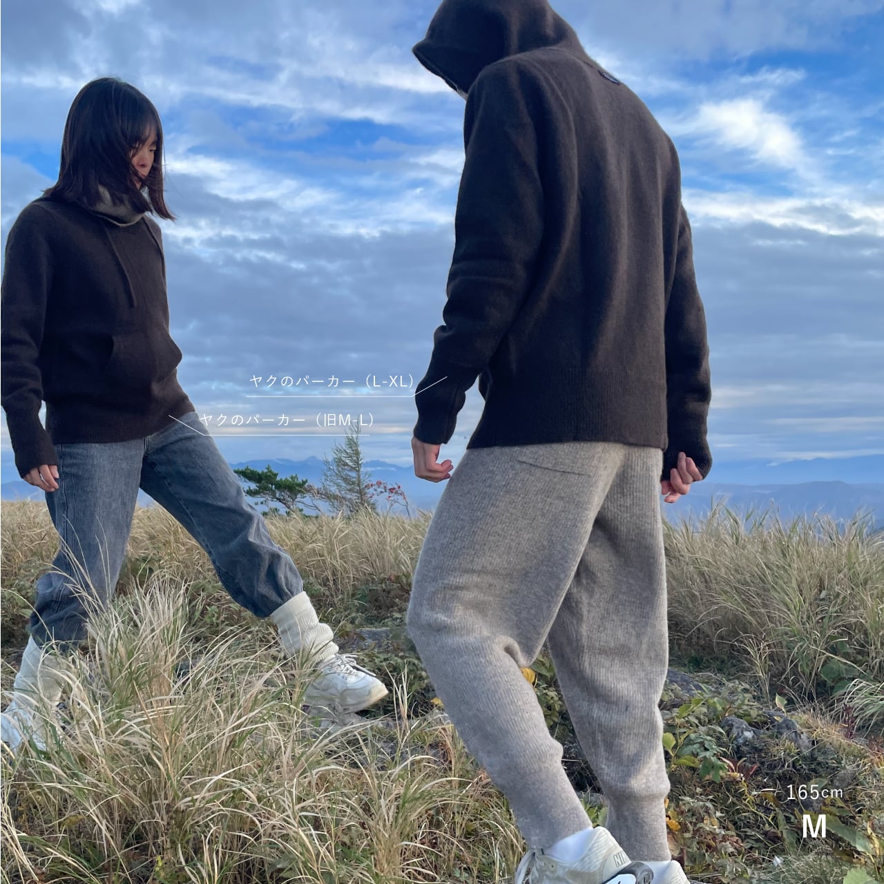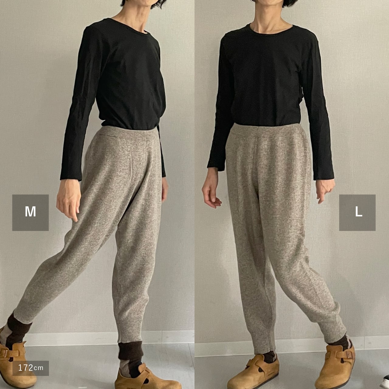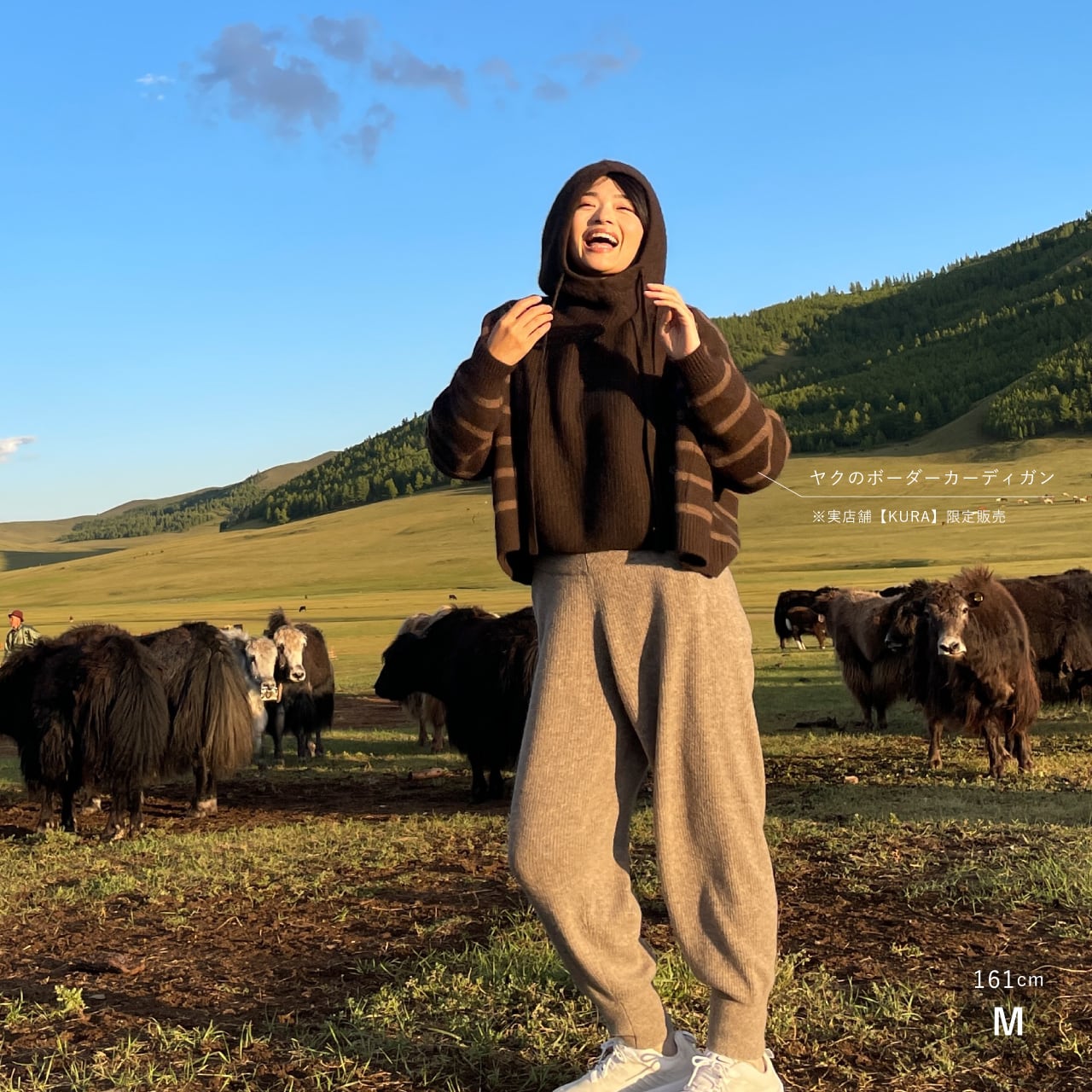 モンゴル産ウール100%、肌ざわりのよい薄手ニットのリラックスパンツです。