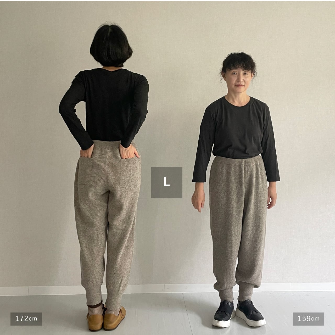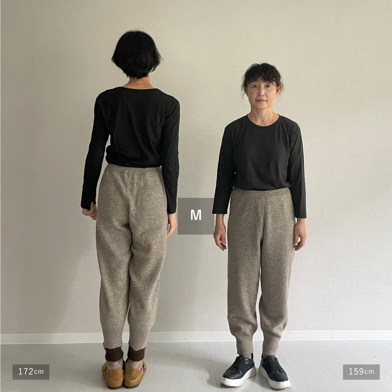 ※するっと穿ける心地よい薄手ニット。着はじめは表面にふんわりした毛羽が現れますが、お洗濯後は自然な起毛感となり、よりやわらかな風合いに育ちます。
