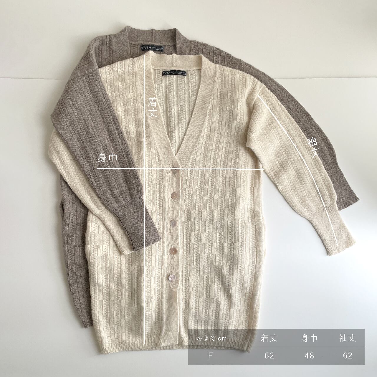 モンゴル産ウール100%、長め丈のコーディガンが届きました。ぽこぽこした縄編みで、コート未満・カーディガン以上。安心感あふれる一着です。