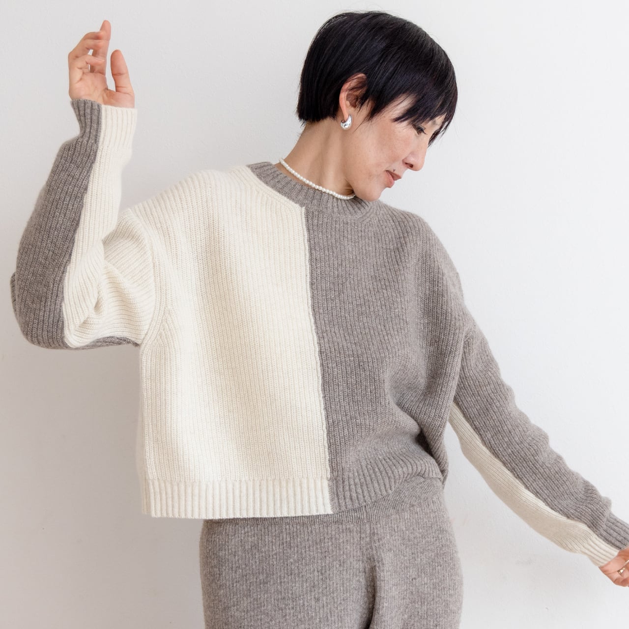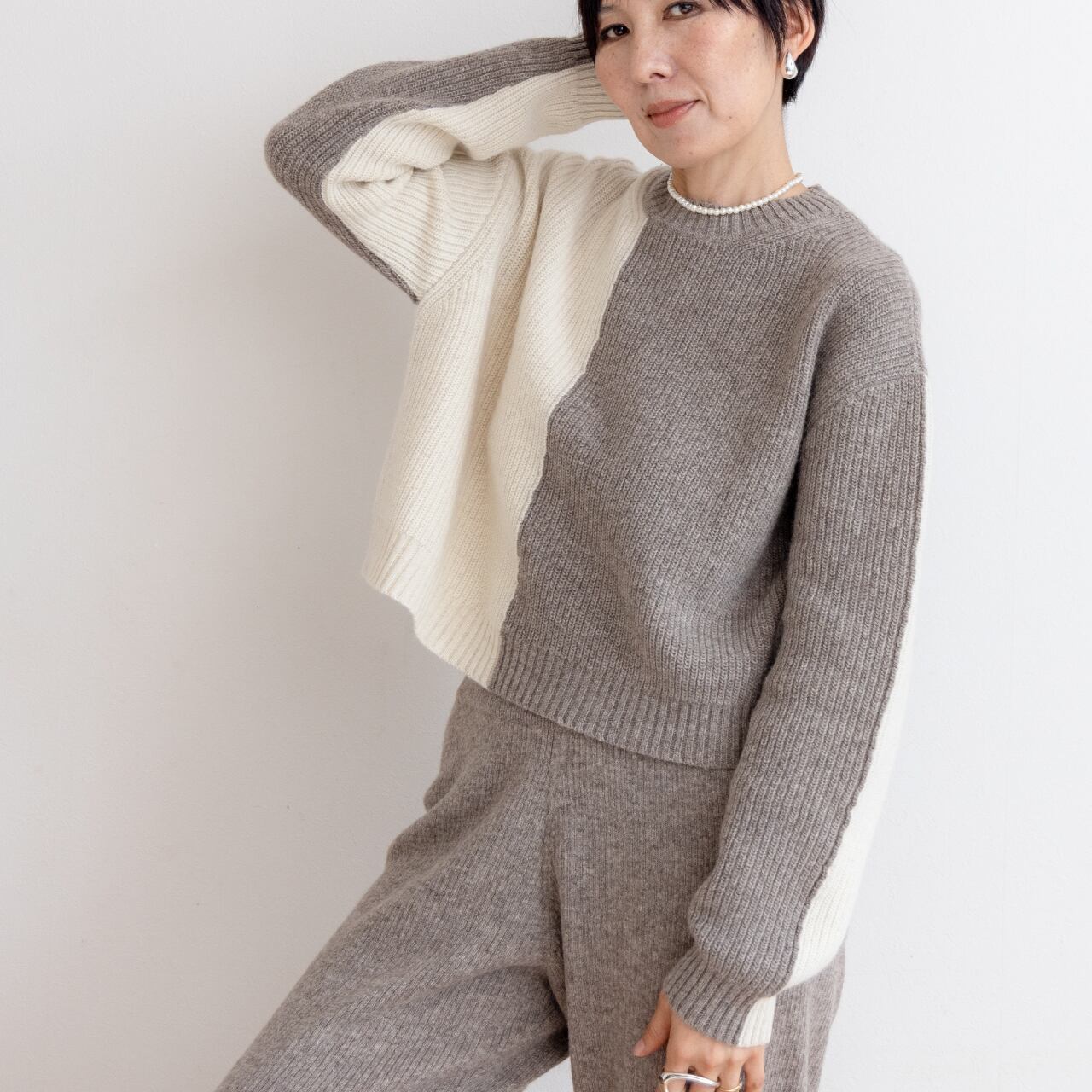 【ナチュラル羊毛のNEWコンポジション/バイカラーニット】
