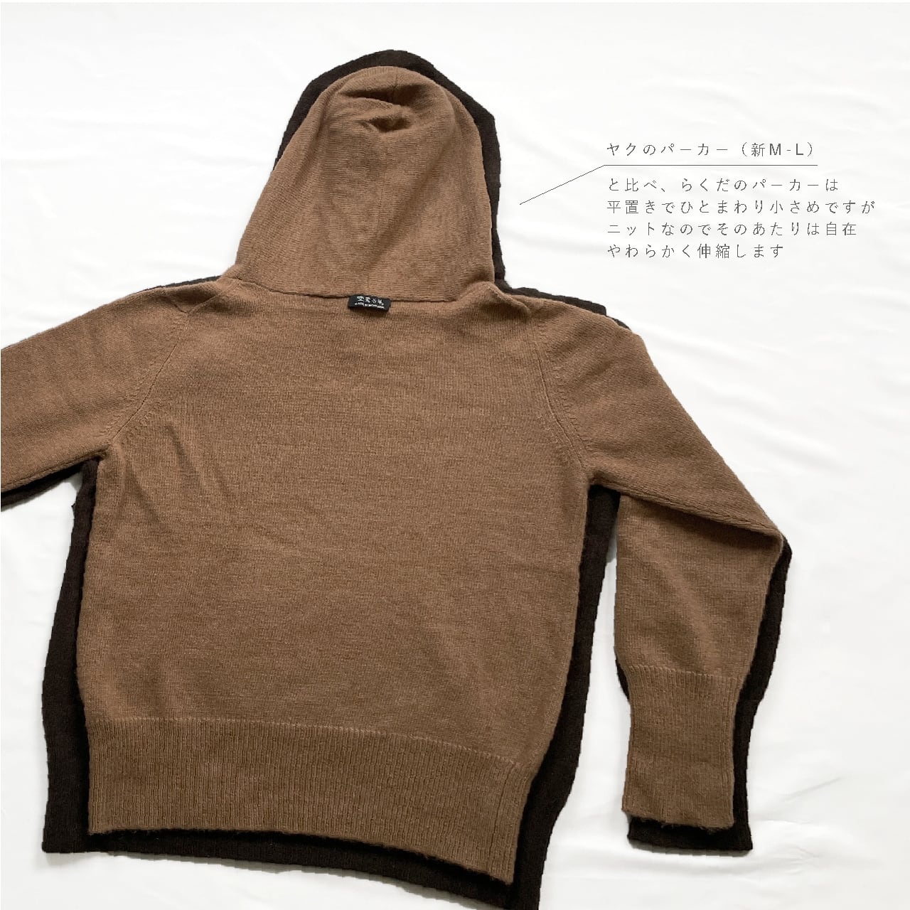 ※「らくだのパーカー」は「ヤクのパーカー」に比べ、とろりと流れるようなやわらかさが特長です。なめらかでコシと艶のあるヤク/しなやかでやわらかならくだ。折り紙付きのあたたかさは同等です。それぞれの風合いや色味でお選びください。