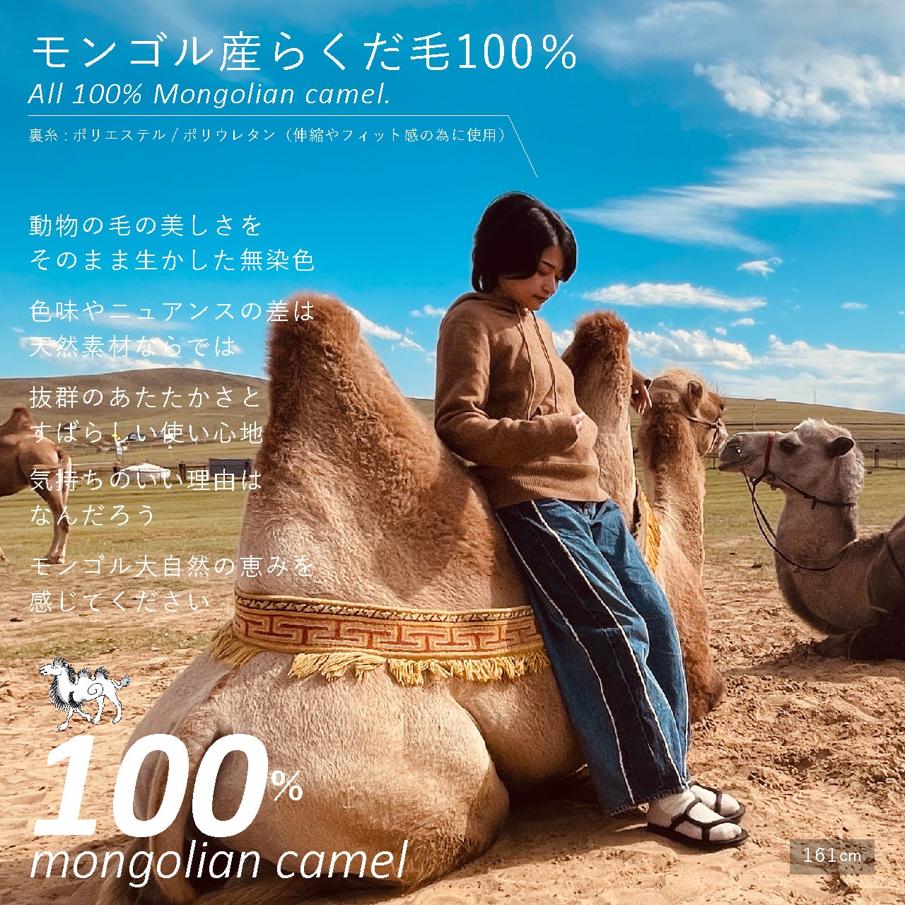 蒸れにくくさっぱりとしたあたたかさが、らくだ毛の最大の特長。着るほどに肌になじみ、しなやかなやわらかさを増していきます。