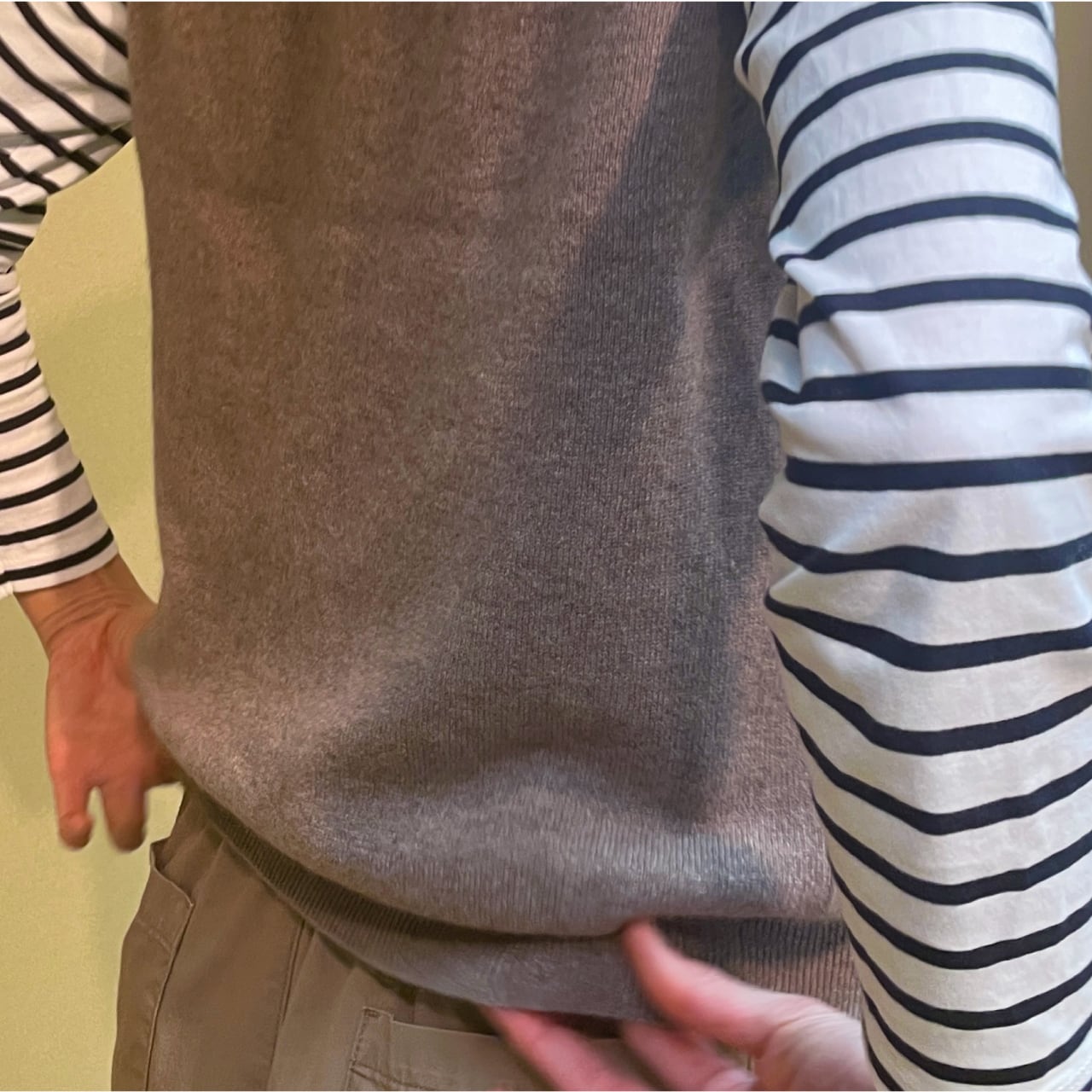 インナーベストとして通年。シャツなどとレイヤーさせて真夏以外ご着用いただけます。