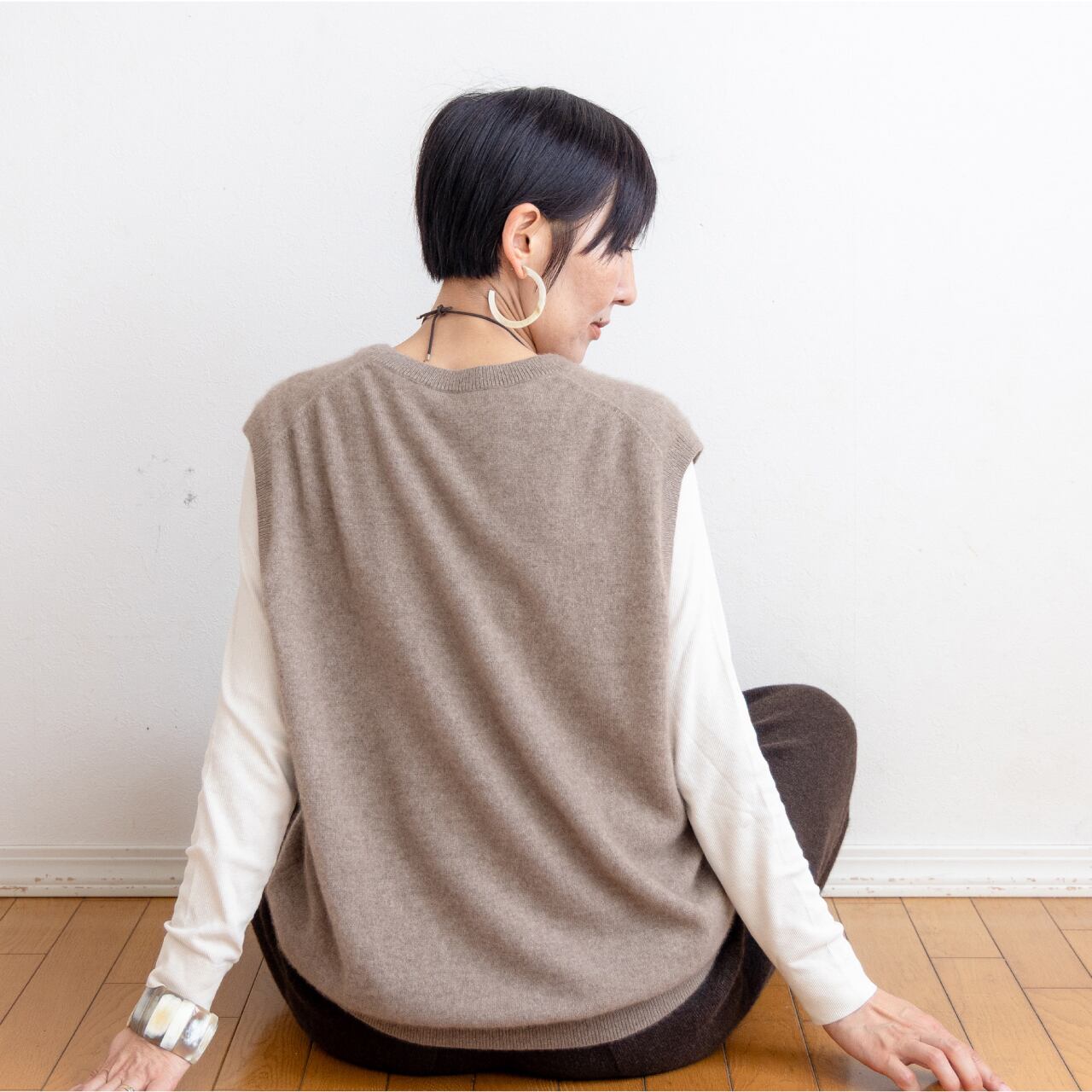 モンゴル産カシミヤ山羊毛100%のシンプルベスト。