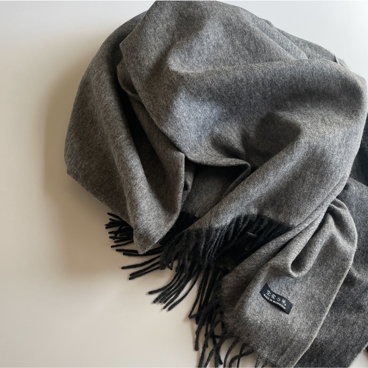 ウールとは思えないほどするりとやさしい肌ざわりと、ほおずりしたくなるほどのやわらかさ。大きく包まれると、ふんわりとした安心感が全身に広がります。