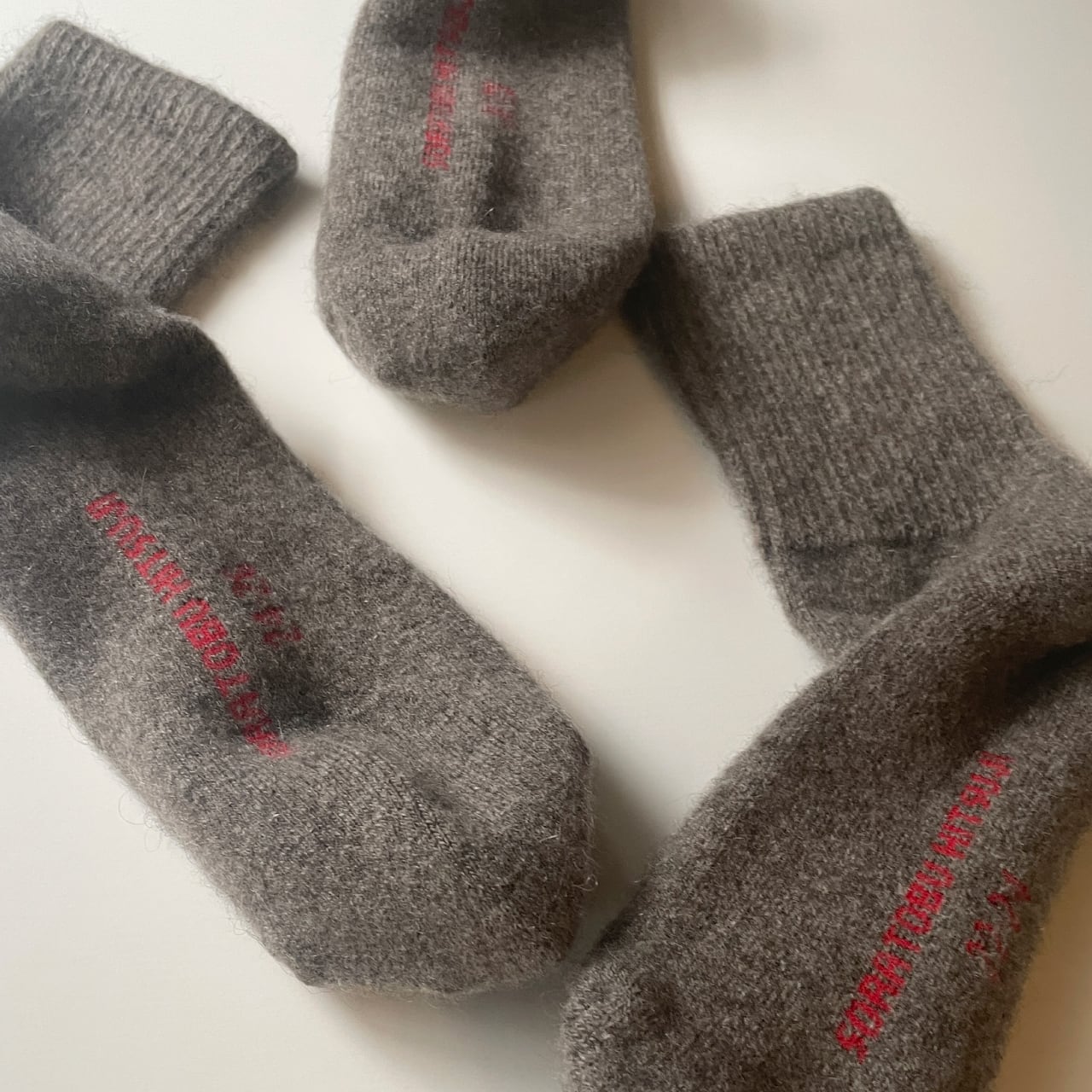 【NEW!グレー×赤フォント/モンゴリアンヤク100%のあたたかい靴下】