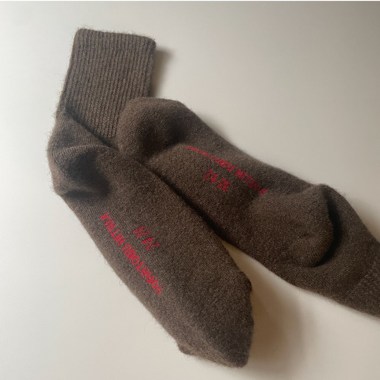 【NEW!うす茶×赤フォント/モンゴリアンヤク100%のあたたかい靴下】