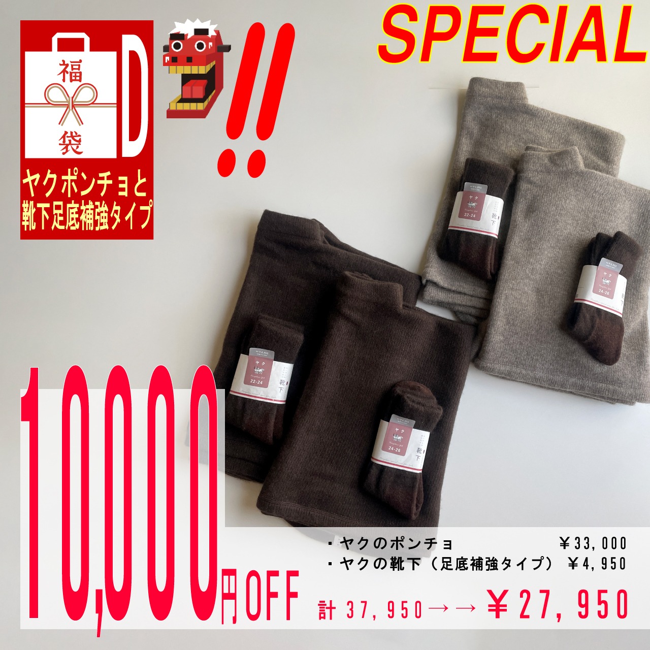 ヤクたっぷり100%ポンチョと靴下セットが10,000円OFF!