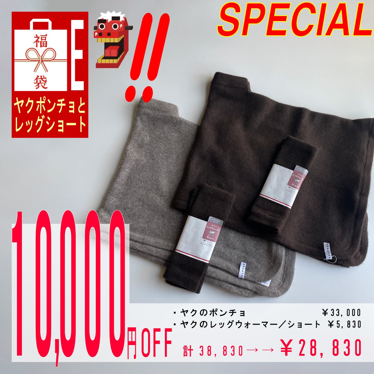 ヤクたっぷり100%ポンチョとレッグウォーマーが10,000円OFF!