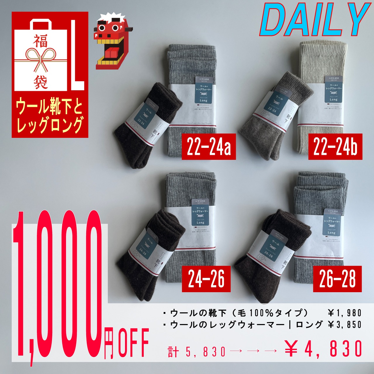 今回の「webshop早めの福袋」DAILYカテゴリ、冬の足元ぬくぬく定番セットです。