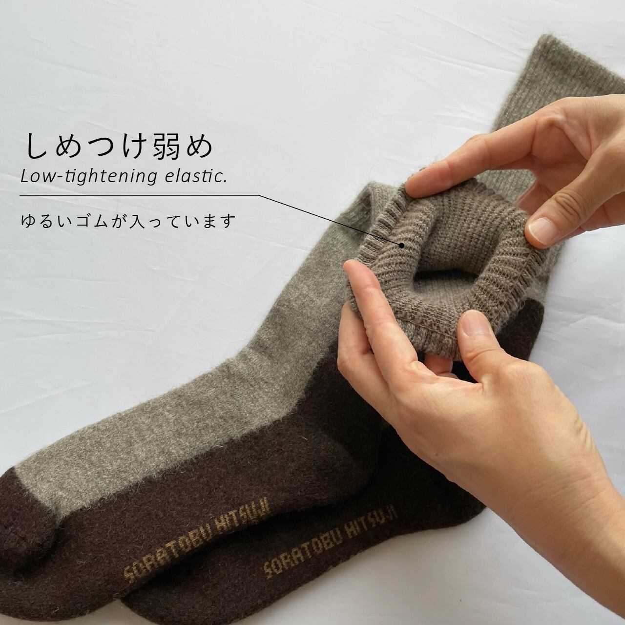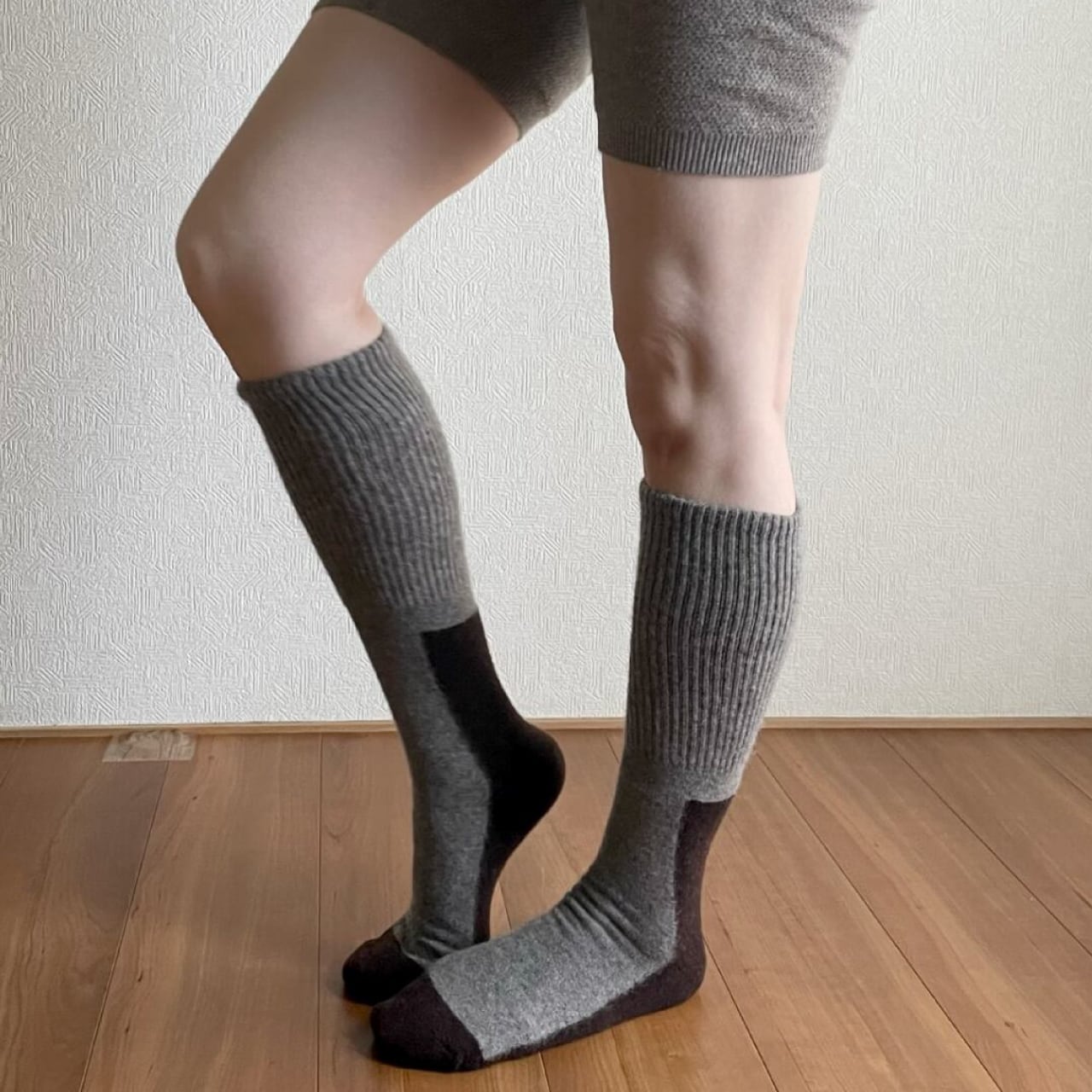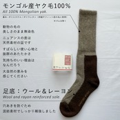 ヤクの中でも希少なグレー100%の本体に、モンゴリアンウール×レーヨンの、しっかりとした足底。冬の装いにすっとなじむ、グレー×こげ茶の上品なバイカラーデザインです。