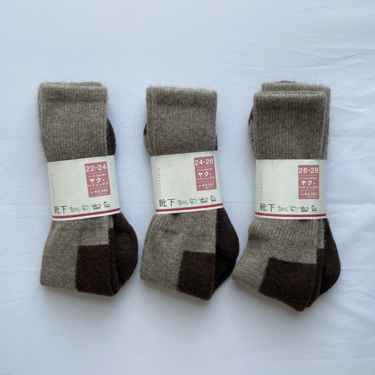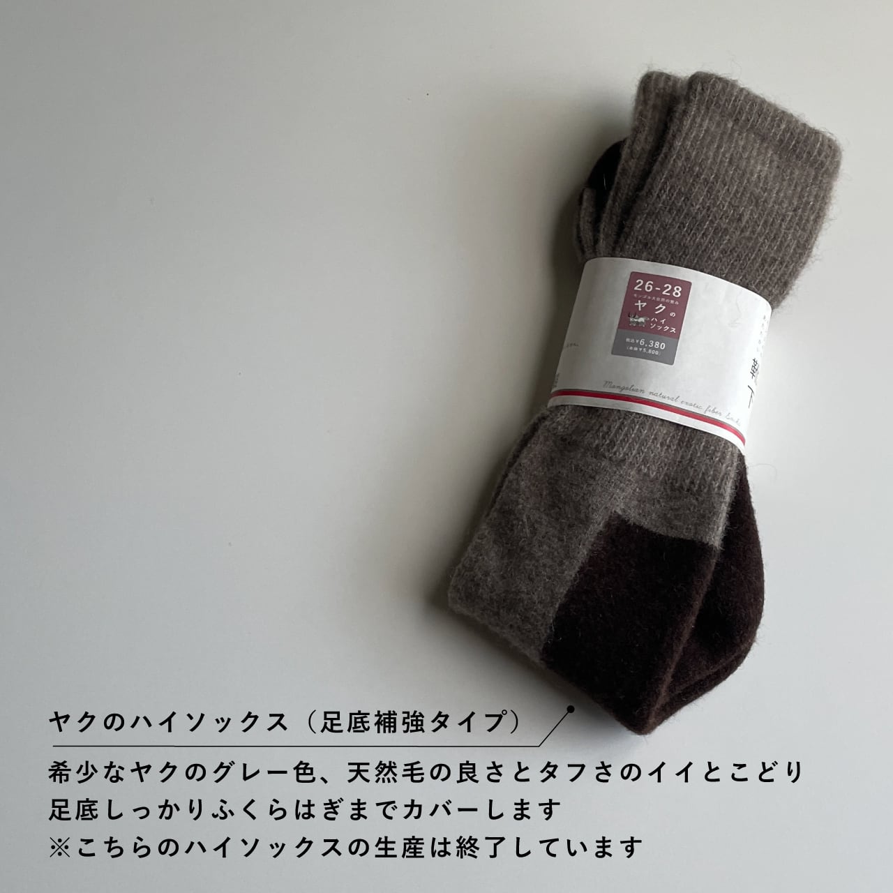 原価高騰の影響により「ヤクのハイソックス」は2025AWをもって生産終了が決まりました。それを見越して、webshop担当が自分用に…と数足キープしていたものから(・・;)お出しいたします。