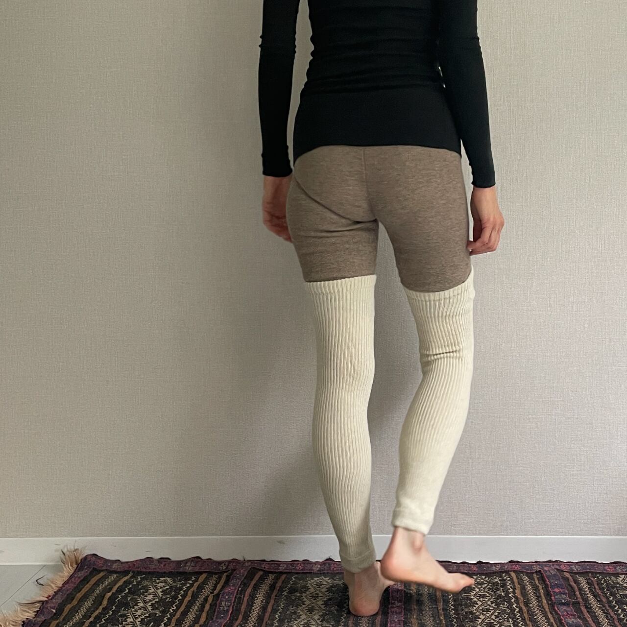 また、素肌へ直履きするよりも、レギンスやズボンの上から重ねた方がズレ落ちにくくなります。あたたかさも増すため、この着用方法をおすすめします。