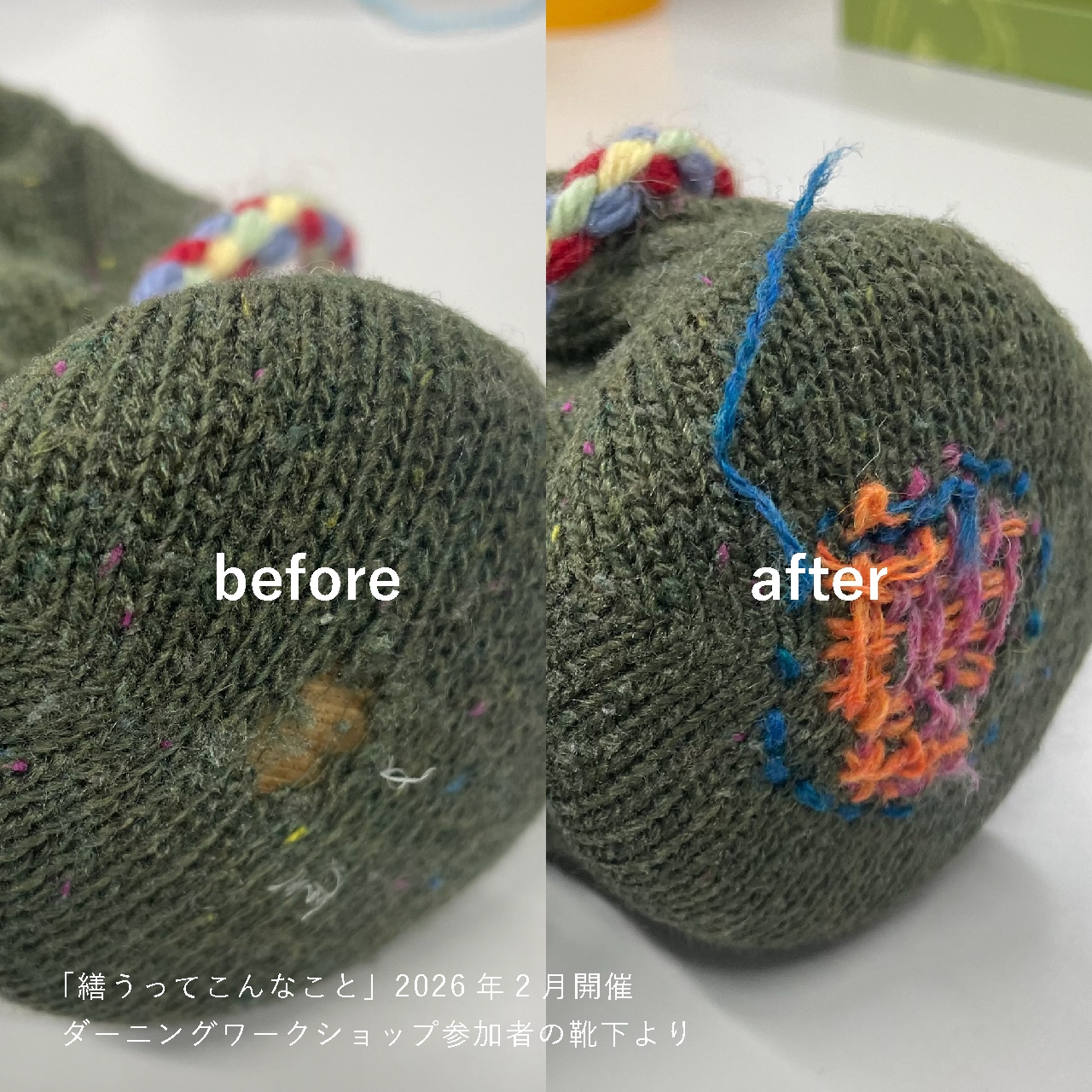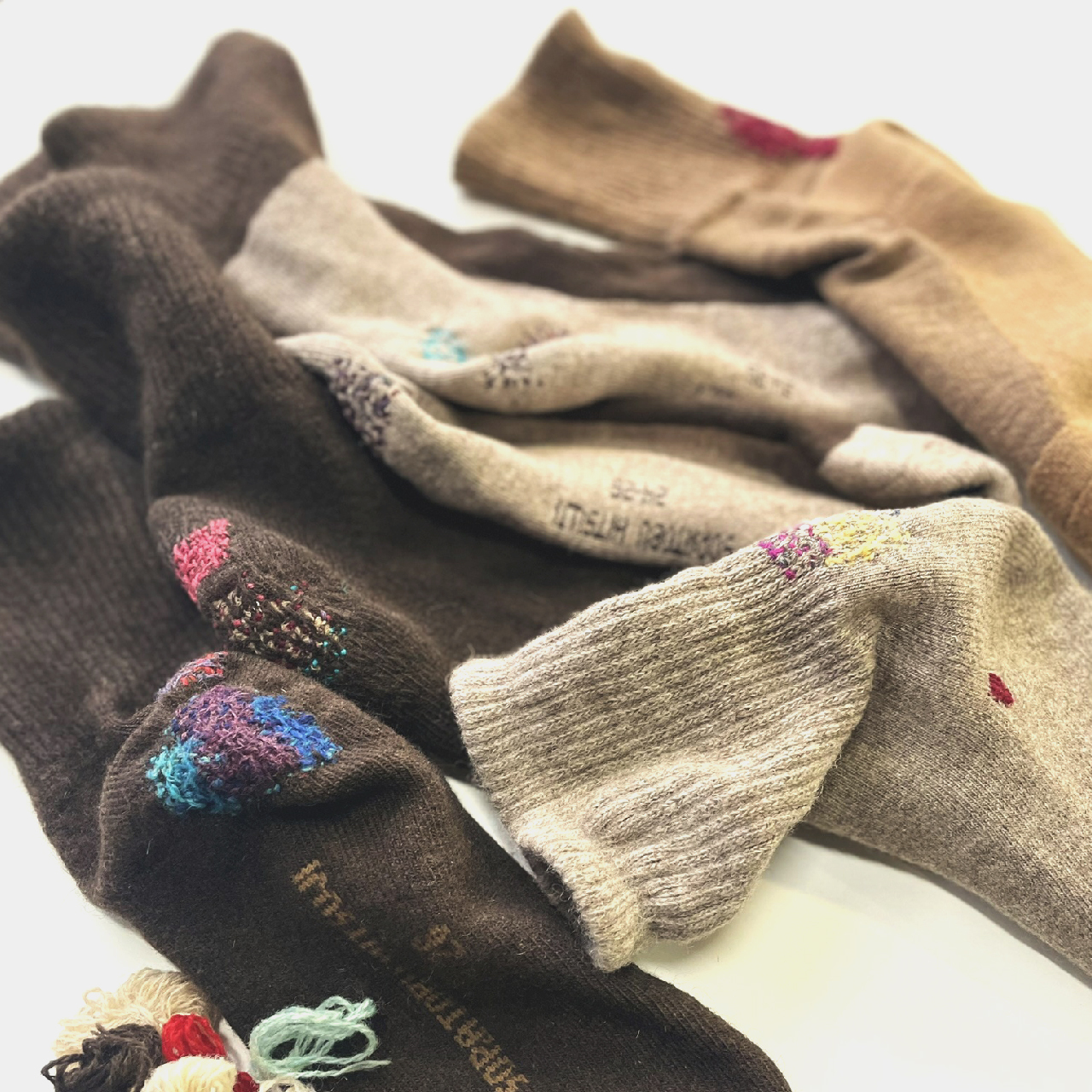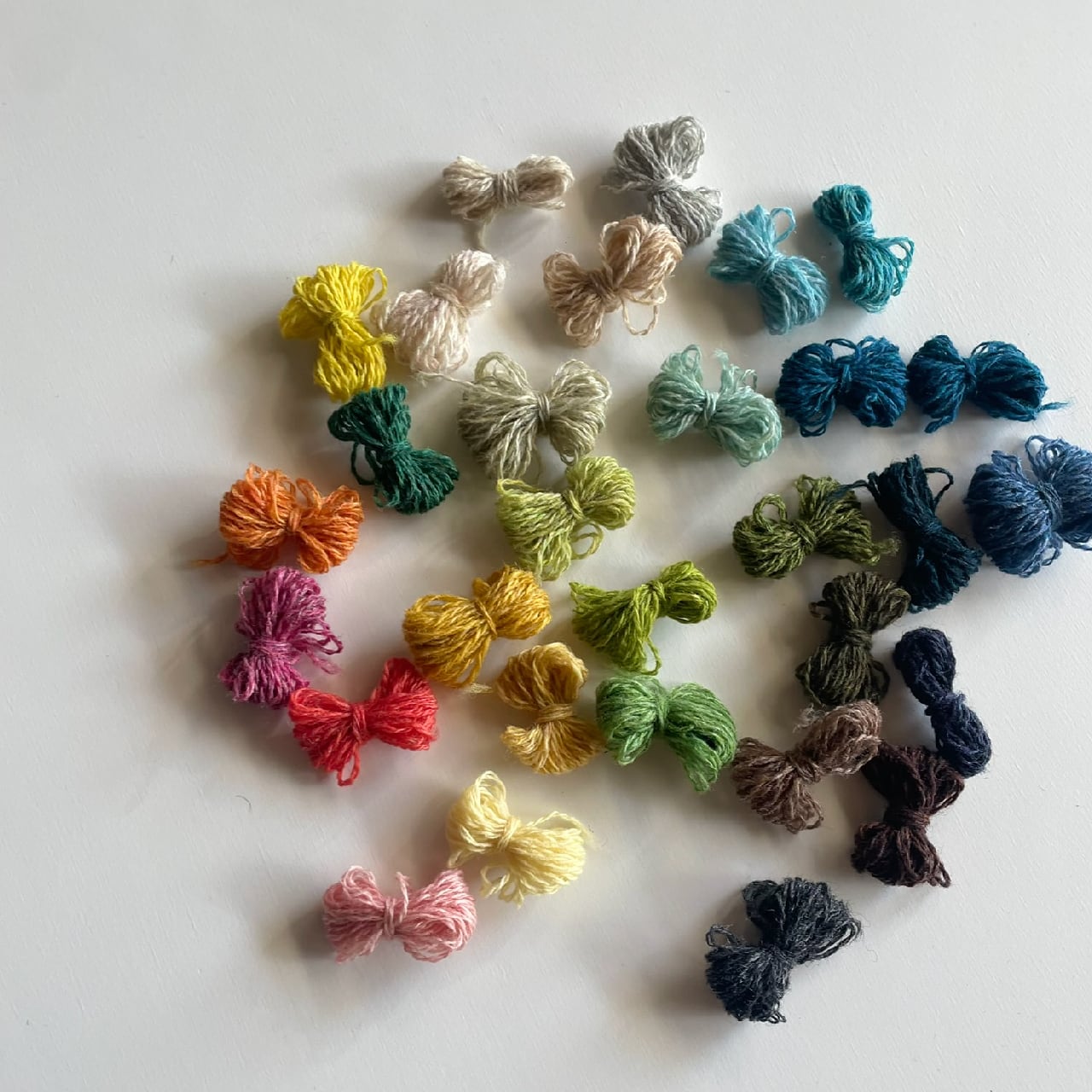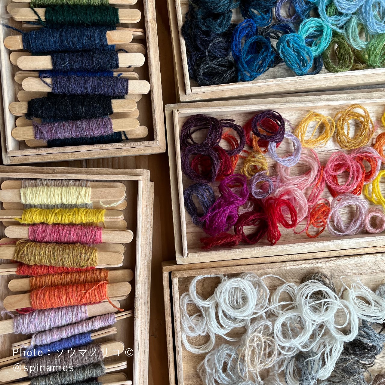 その膨大なカラーバリエーションの中から、「繕うってこんなこと・ダーニングワークショップ」のレクチャーする人 @spinamosさんが、およそ20色のワクワクするアソートに仕立ててくださいました。
