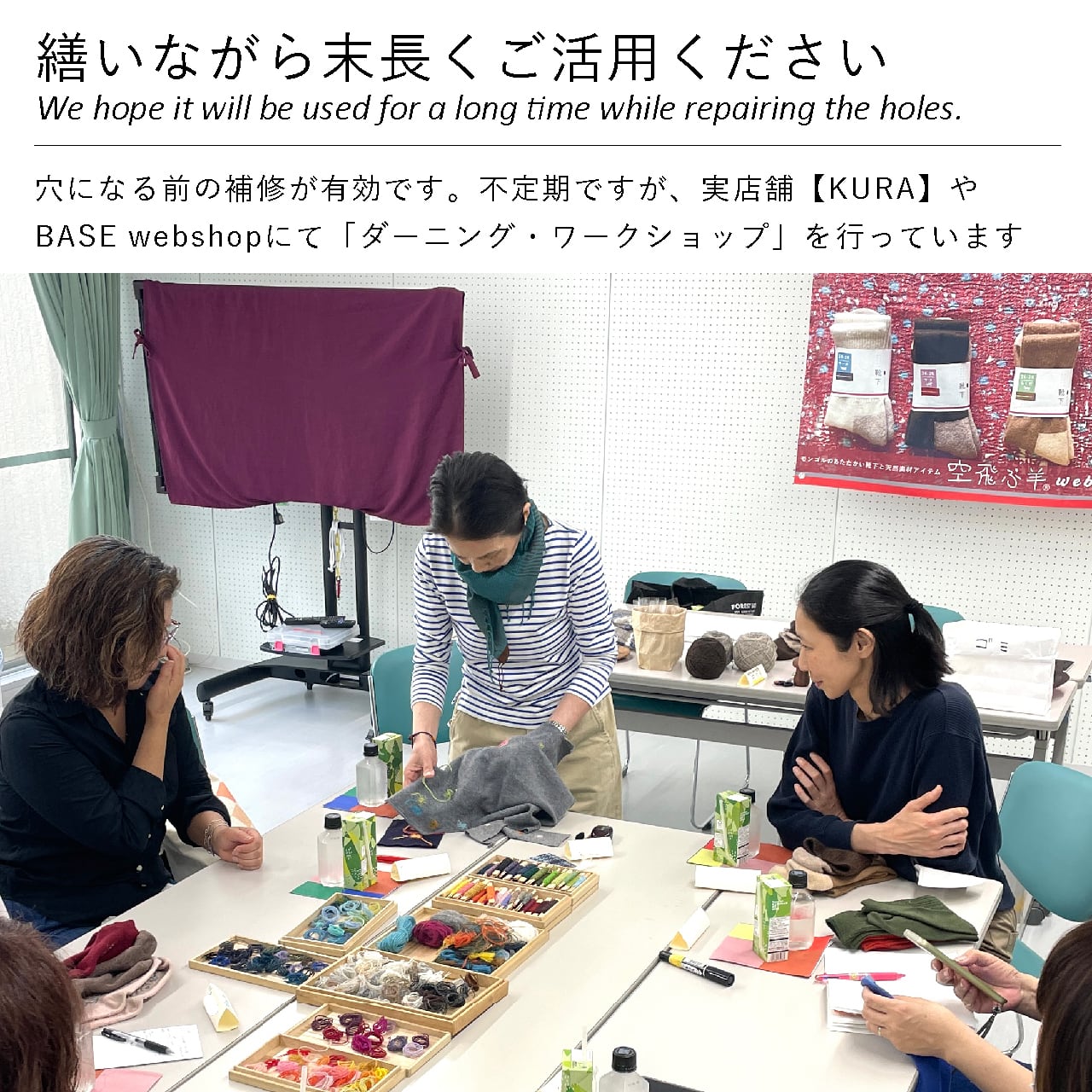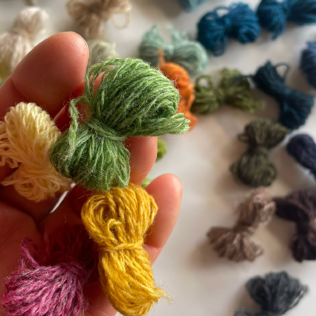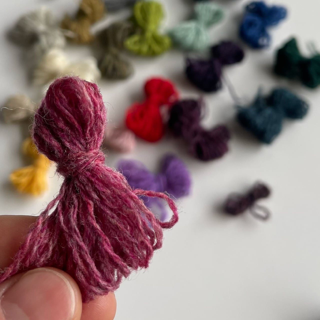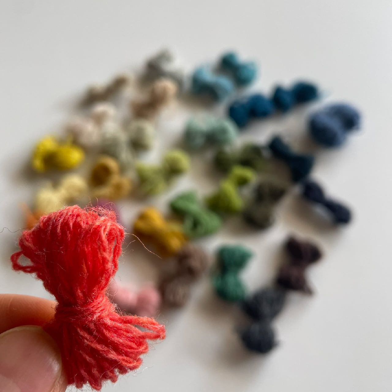 その膨大なカラーバリエーションの中から、「繕うってこんなこと・ダーニングワークショップ」のレクチャーする人 @spinamosさんが、およそ20色のワクワクするアソートに仕立ててくださいました。