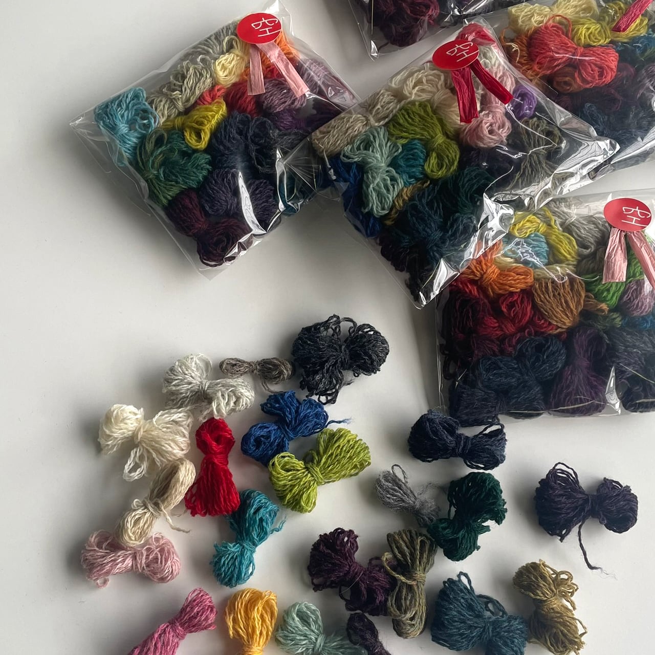 ※本商品はおよそ20色の「おまかせアソート」です。およそ15g内で、画像とは糸色・巻き・数が変わります。組み合わせは届いてからのお楽しみに♪