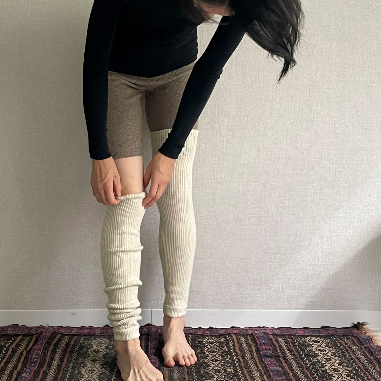 太ももまで伸ばせるタイツ級の保温力。ひざをすっぽり包むことであたたかさと安心感が違います。着ぶくれしにくい厚みなので、ズボンの中でも快適。折り返してふくらはぎダブルづかいもおすすめです。