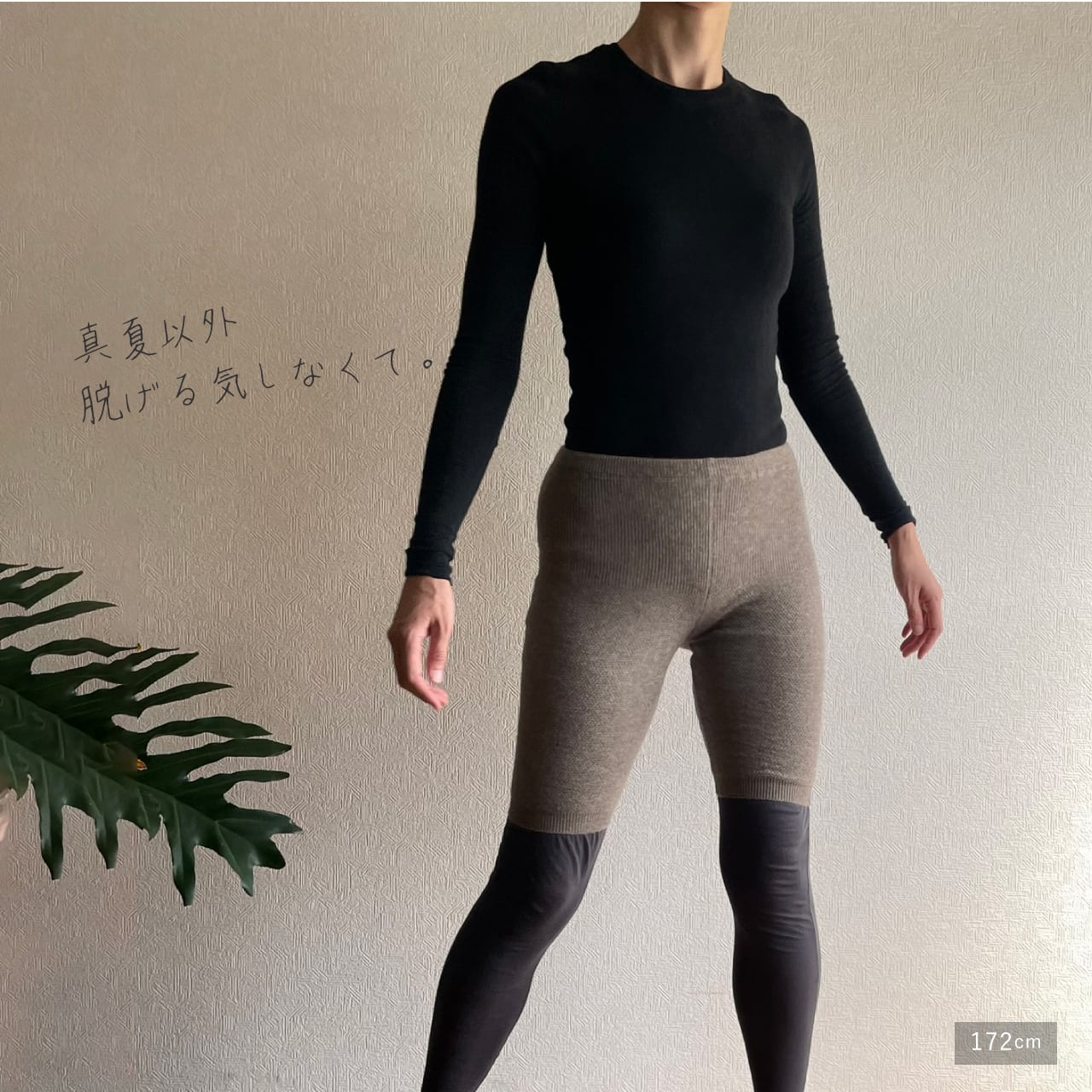 全体に編み込まれた極細のゴムがほどよく伸縮し、フィット感も抜群。空気を含んだポコポコとした編み地はやわらかく、薄手なのでアウターにも響きにくいのが特徴です。