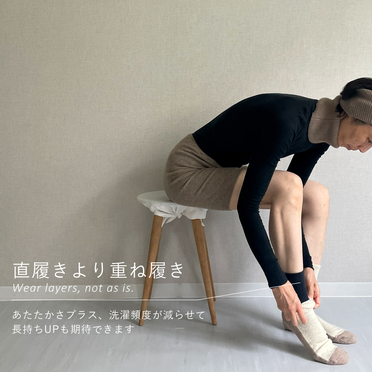 自然な素材感とやさしい肌あたりが魅力の純毛仕様。リラックスタイムやおうち使いに最適です。100%ならではの別格の心地良さをぜひご体感ください。擦れやすい部分の穴あきにご注意ください。