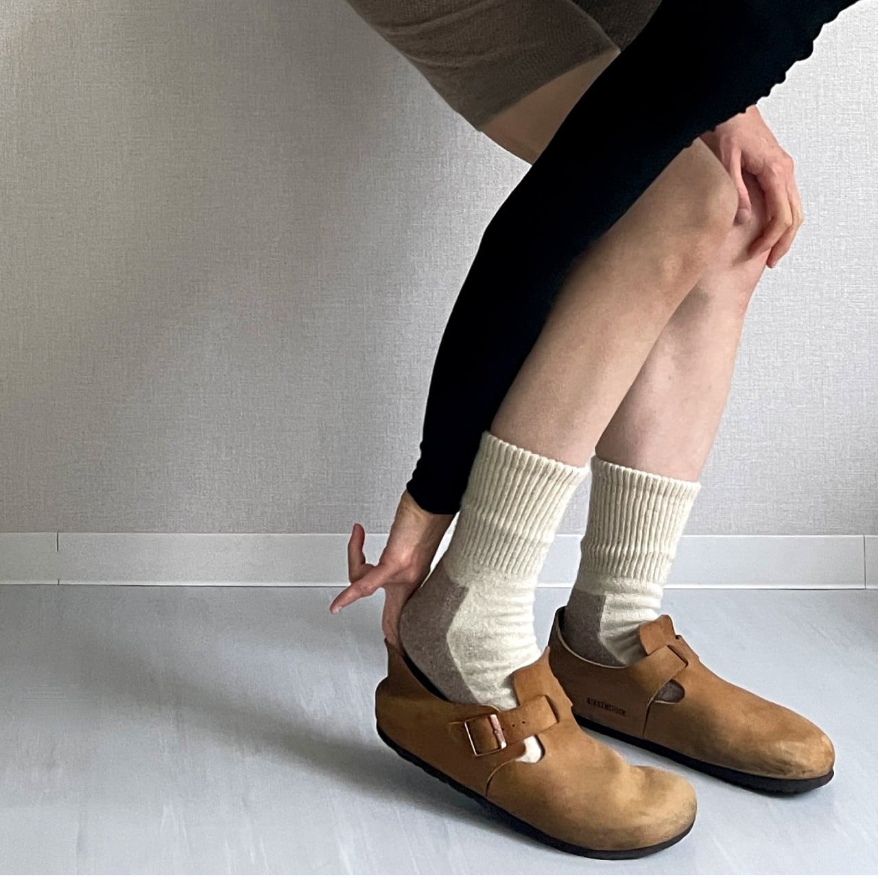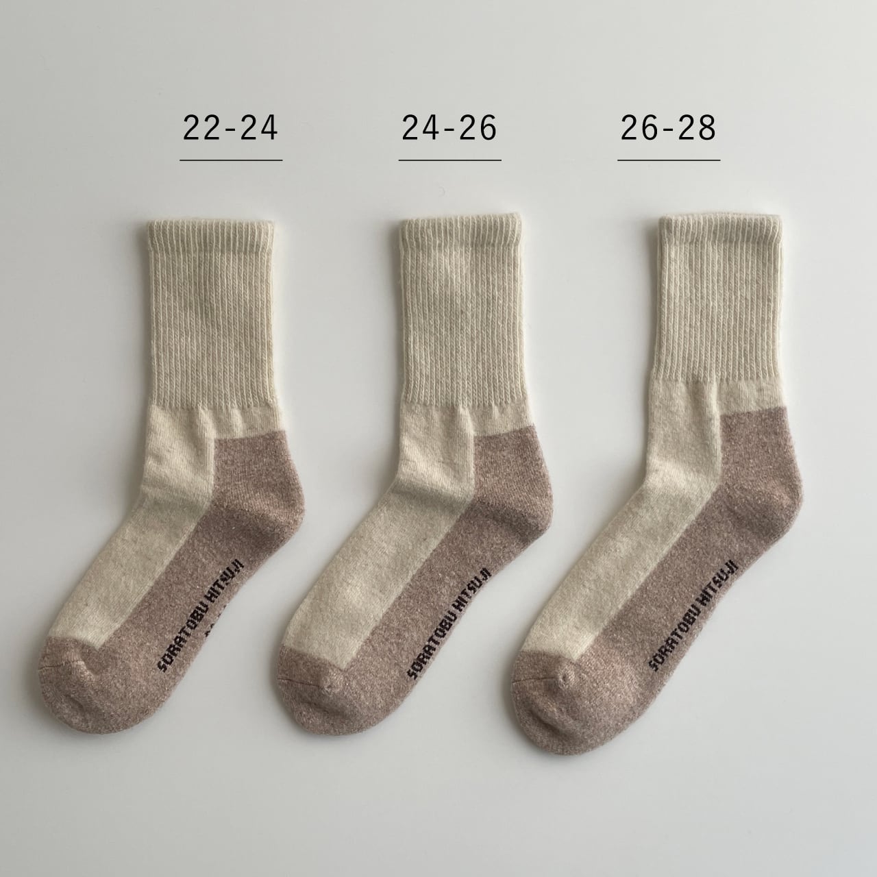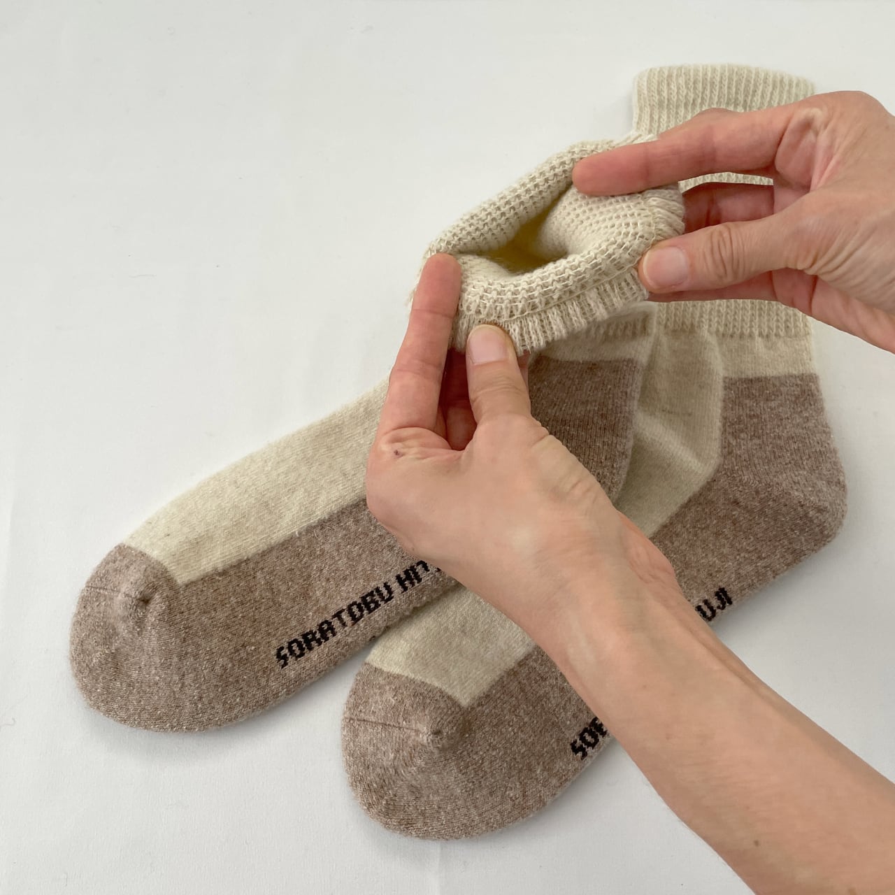 【杢がかったナチュラル白×ベージュ/足底補強のモンゴリアンウールの靴下】
