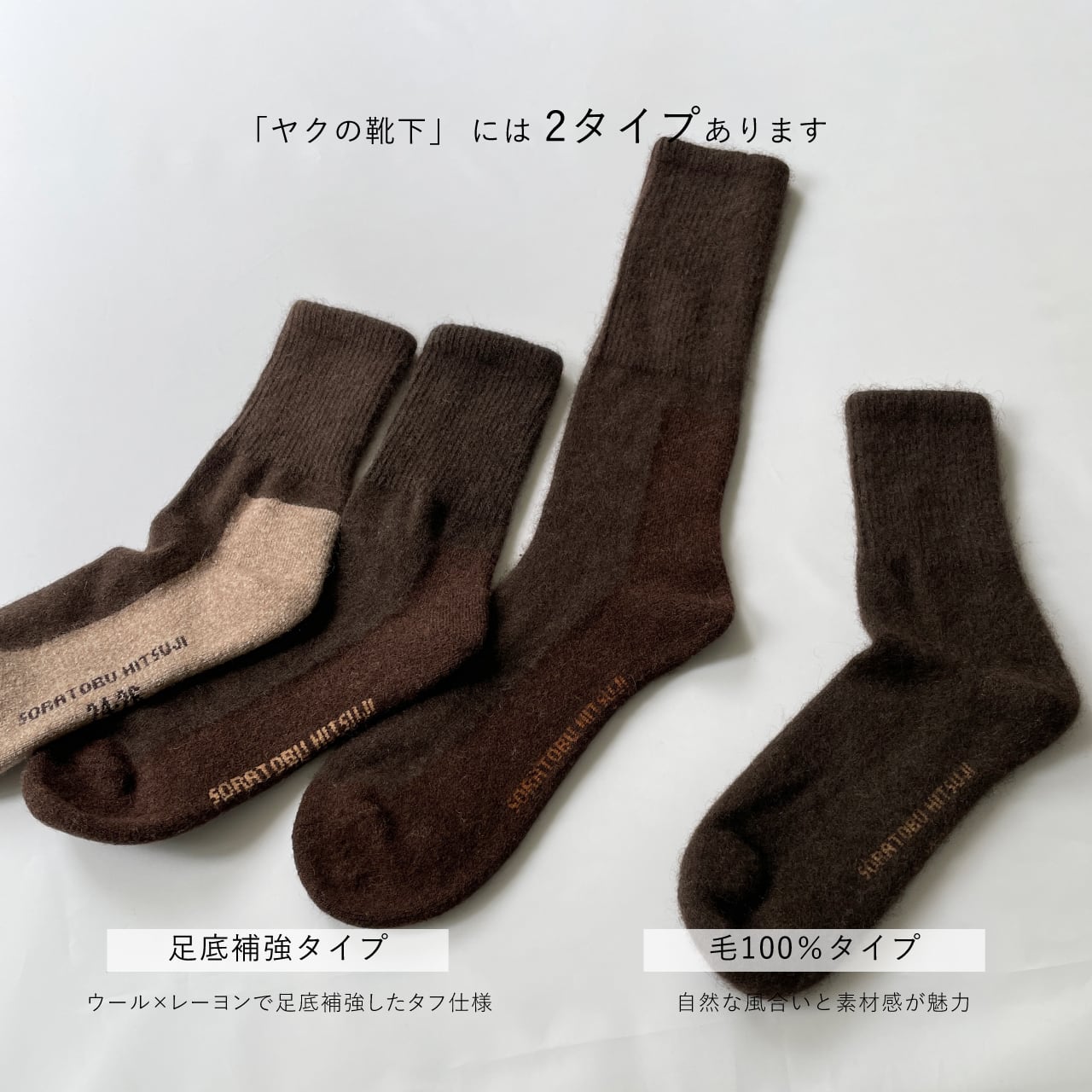 【タフでやさしい、濃いめのマロンブラウン/足底補強モンゴリアンヤクのあたたかい靴下】