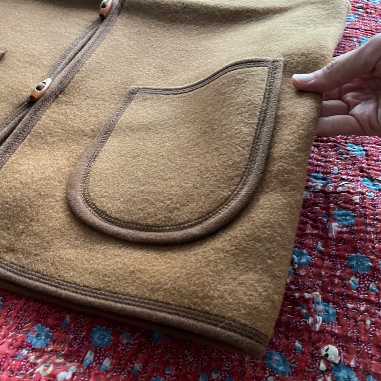 らくだ毛本来の油脂分や獣毛の自然なにおいを感じる場合は、風通しの良い場所で陰干しいただくと徐々にやわらぎます(日本国内で追加ワンウォッシュ済みです)。