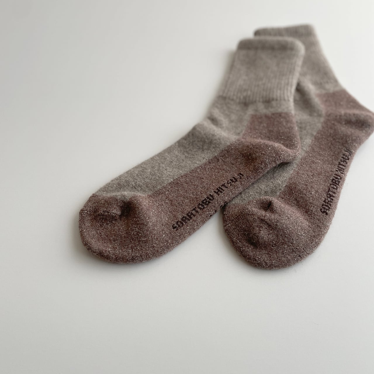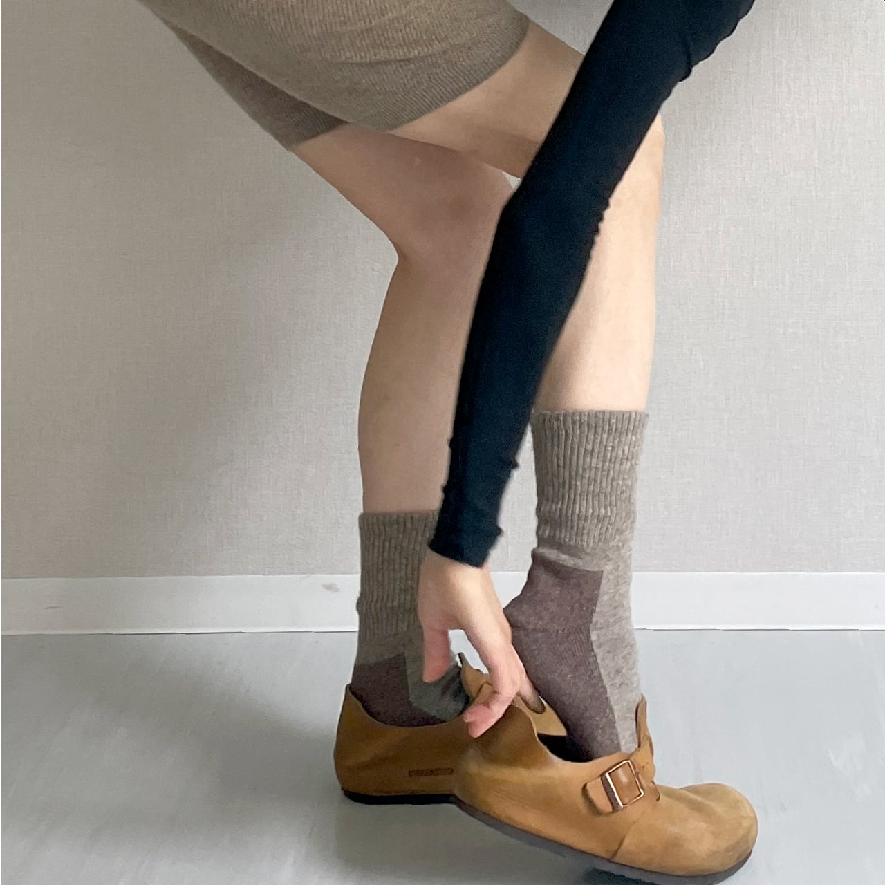 【雑穀のようなあずきグレー/足底補強モンゴリアンウールのあたたかい靴下】