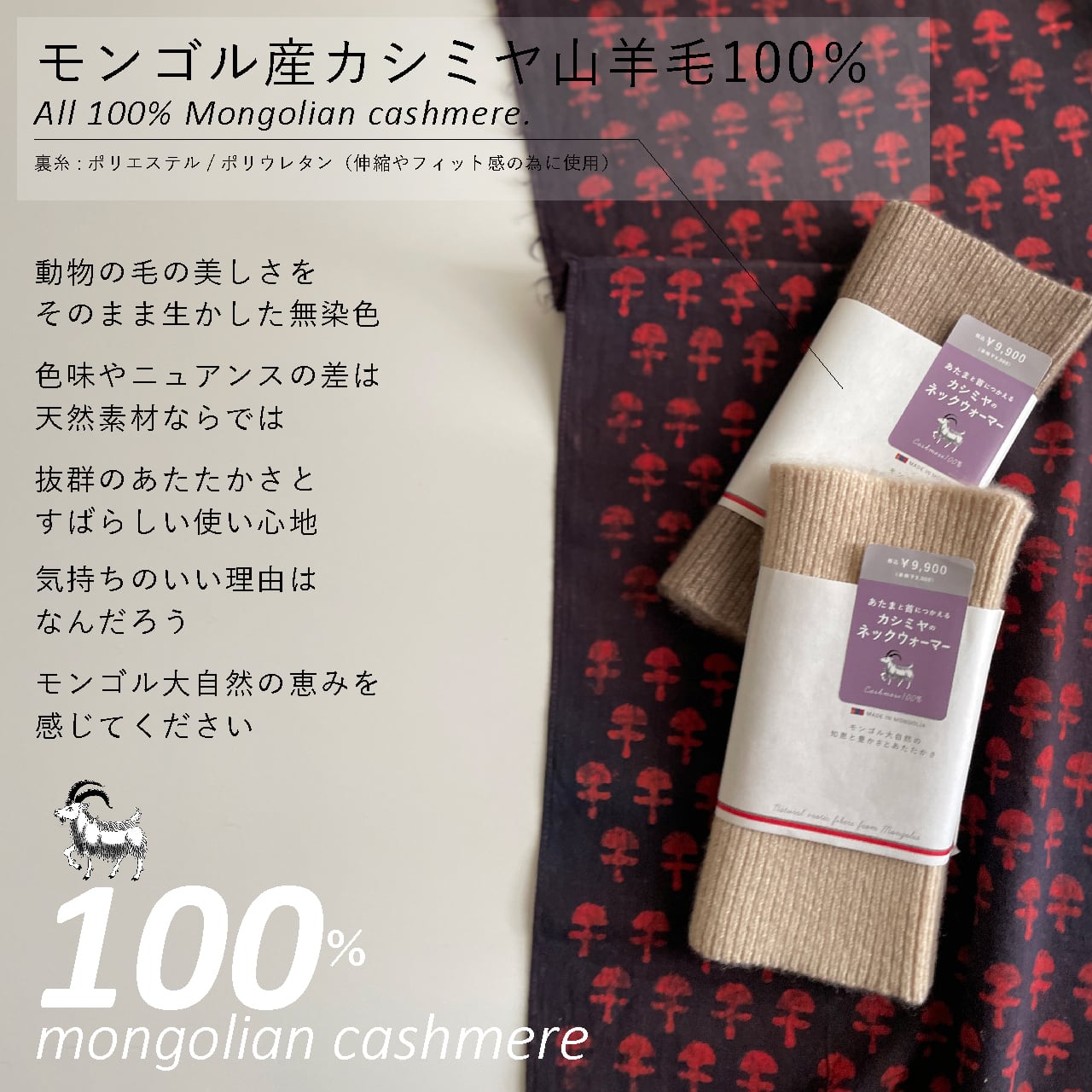 良質なモンゴル産カシミヤ山羊毛100%のやわらかリブ編みネックウォーマー。
