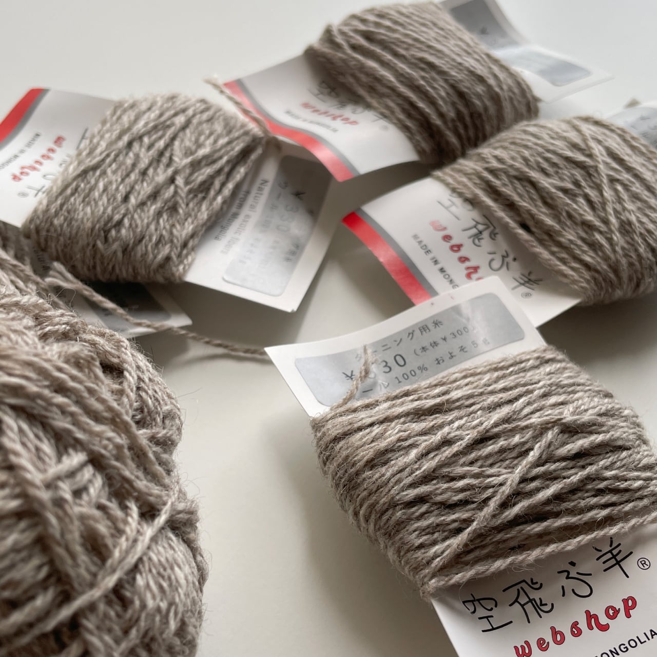 モンゴル産ヤク毛100%、「空飛ぶ羊」のアイテムと同じ素材の毛糸です。