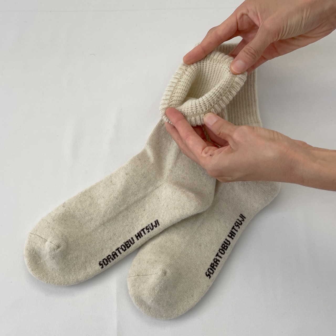 【冬に映えるクリーミーホワイト/モンゴリアンウール100%のあたたかい靴下】
