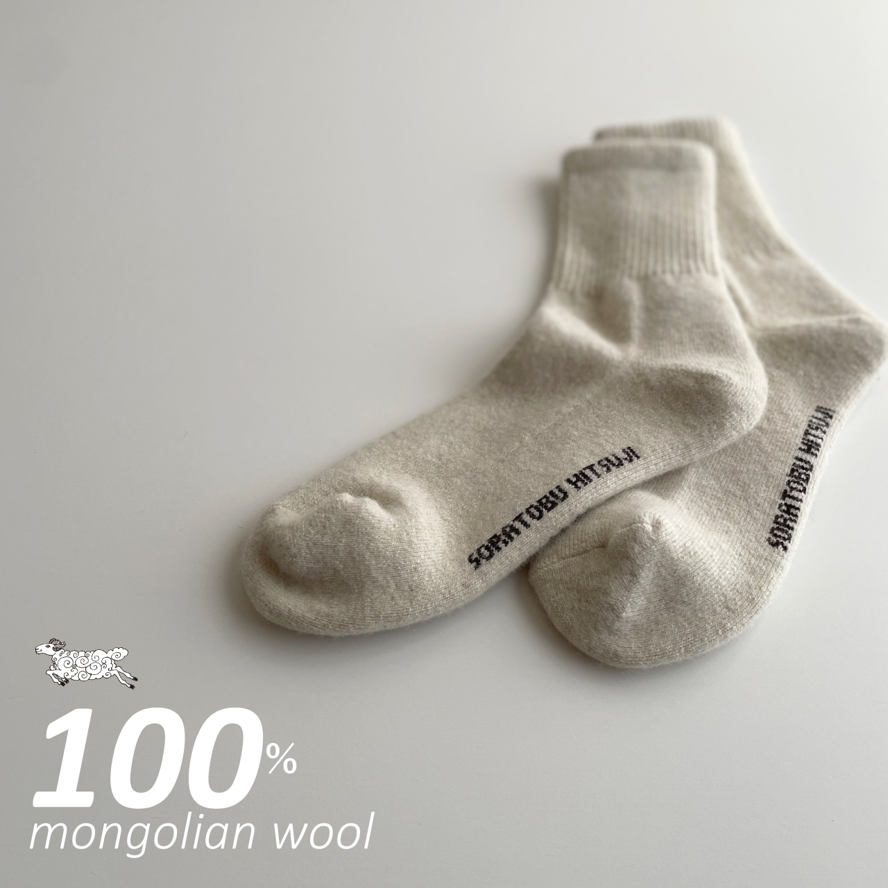 【自然なクリーホワイト/モンゴリアンウール100%の靴下】