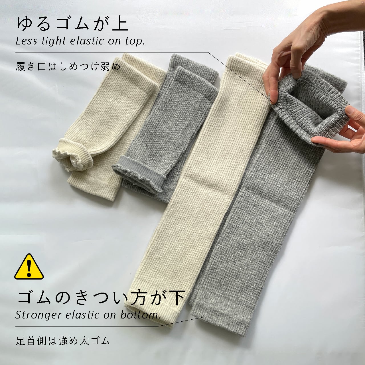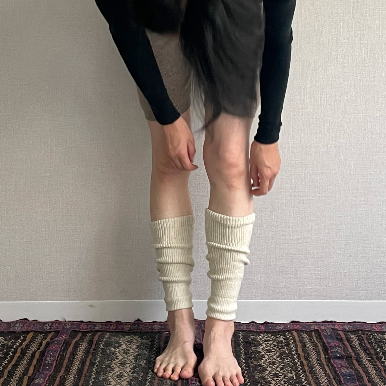 また、素肌へ直履きするよりも、レギンスやズボンの上から重ねた方がズレ落ちにくくなります。あたたかさも増すため、この着用方法をおすすめします。