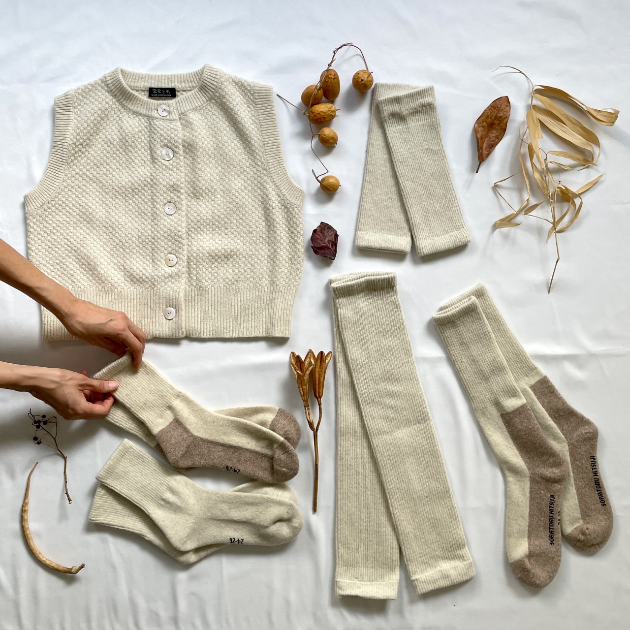天然毛は使うほどにやわらかく肌になじみます。経年の変化も楽しみながら大切にお使いいただければ幸いです。