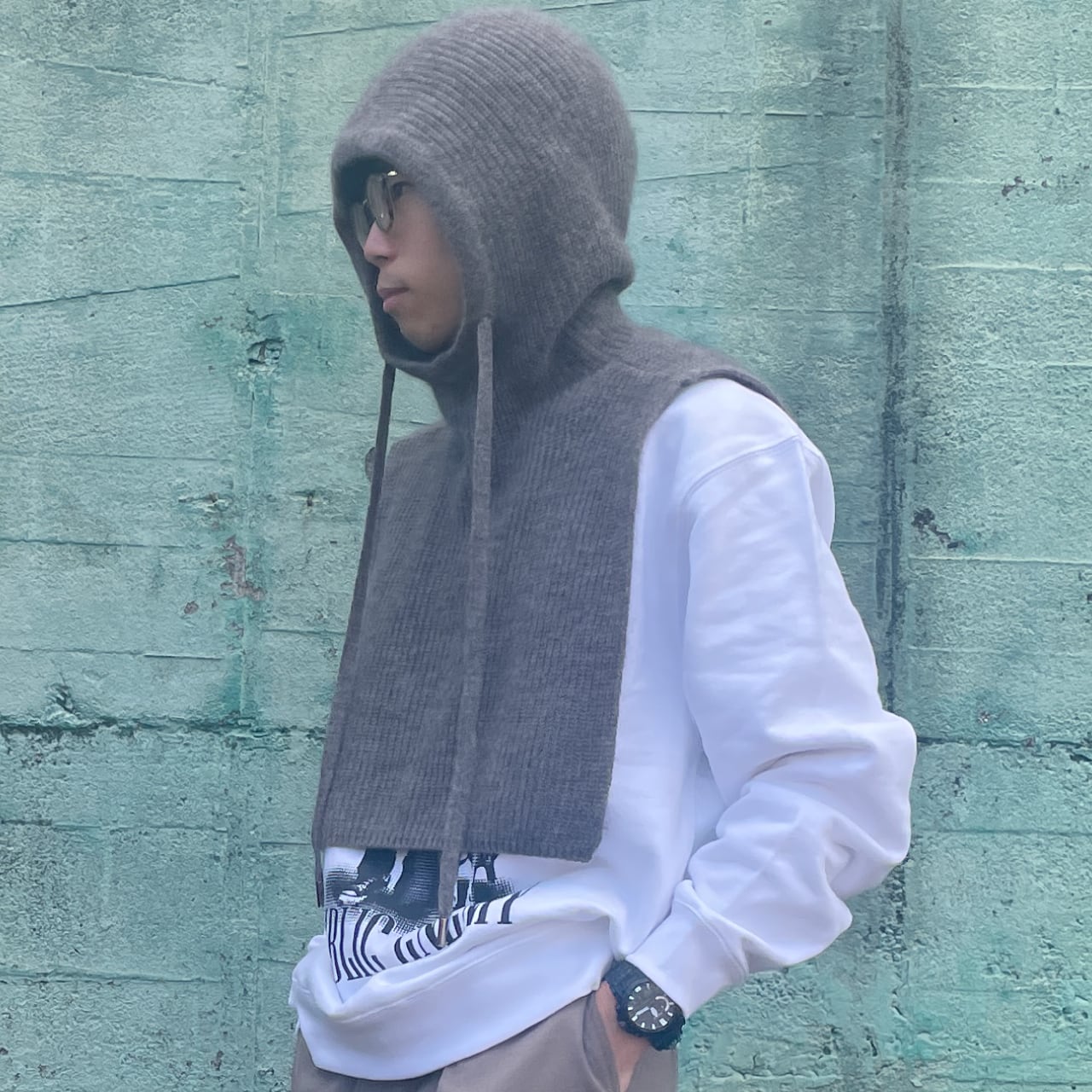 【アクティブな上質フーディ/ヤク100%のフード付き肩掛け】